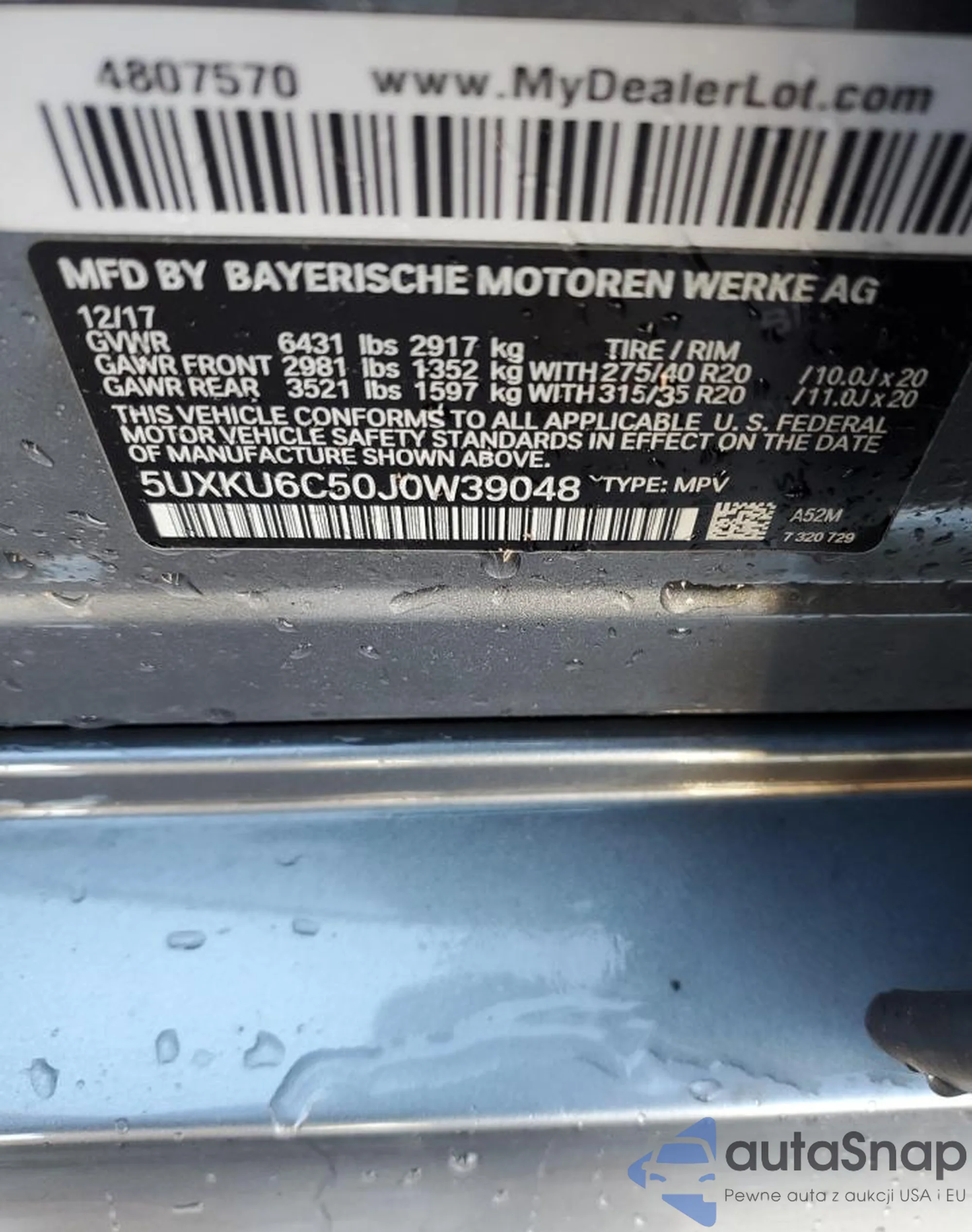 Samochód BMW X6 2018 (VIN 5UXKU6C50J0W39048) nie był wcześniej licytowany. Dokumenty są czyste, przebieg odpowiada lub jest niższy niż średnia rynku. Sprzedaje go firma ubezpieczeniowa – polecamy zakup. Dostawa do portu zajmie ok. 6–8 tygodni.