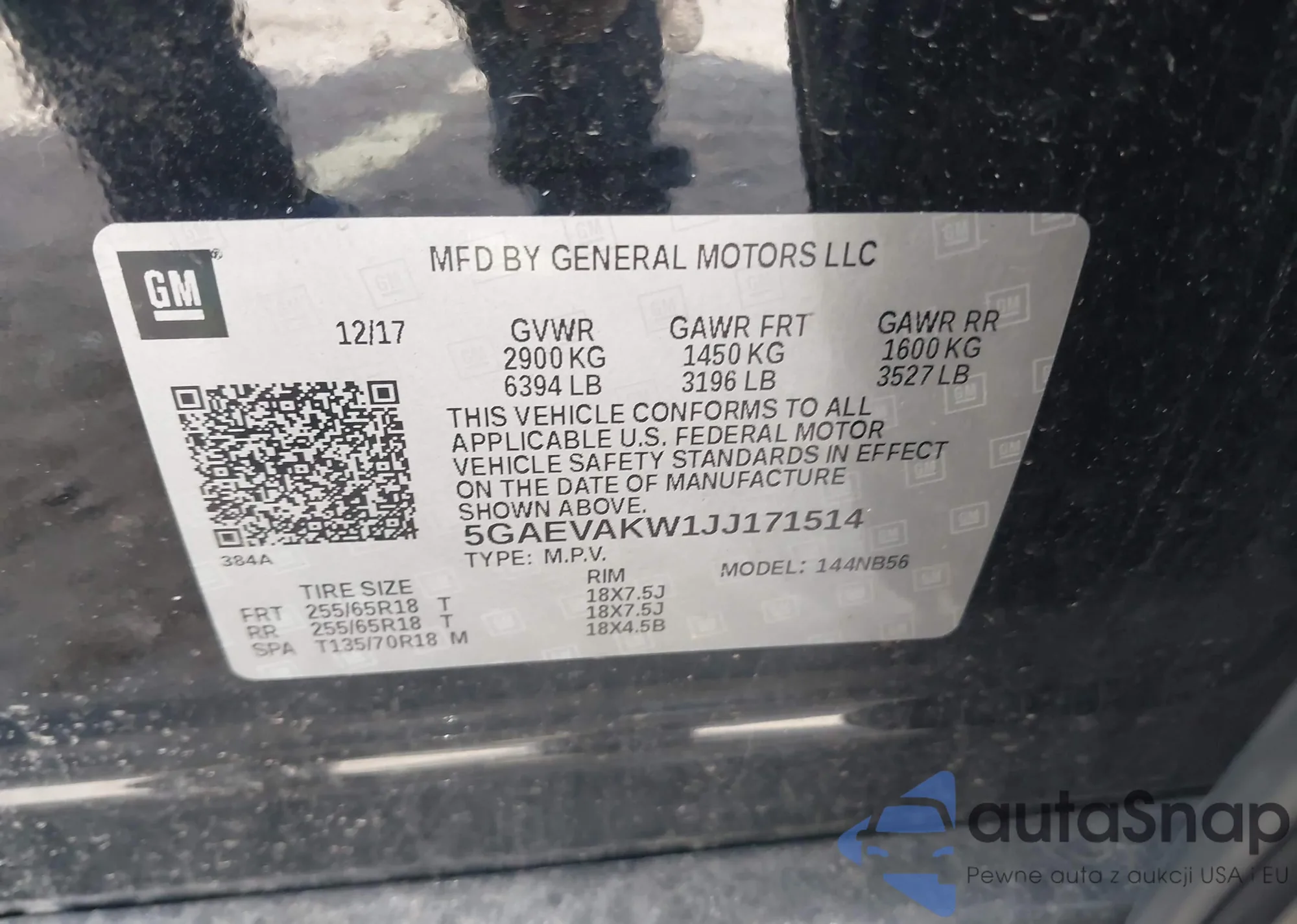 VIN: 5GAEVAKW1JJ171514