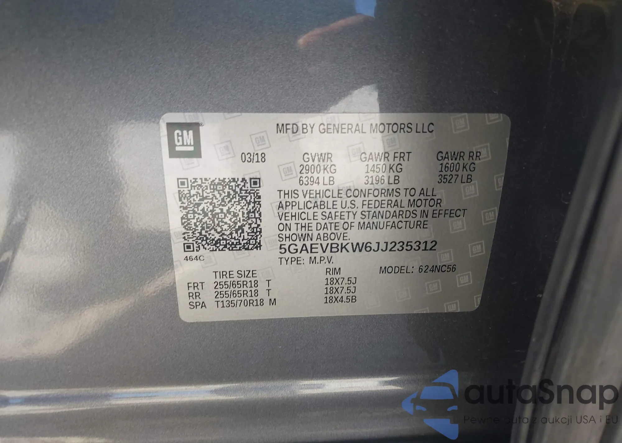 VIN: 5GAEVBKW6JJ235312
