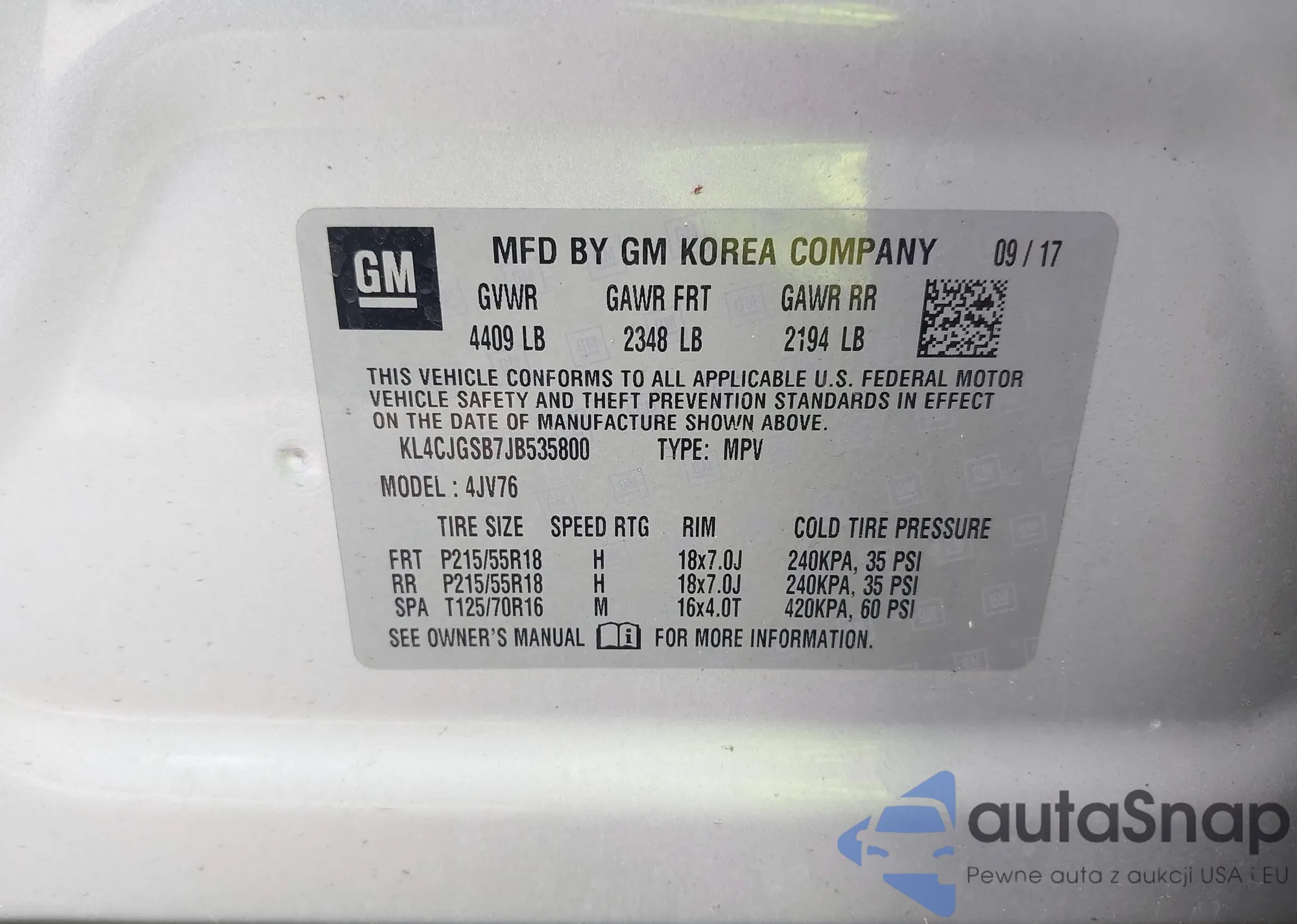VIN: KL4CJGSB7JB535800