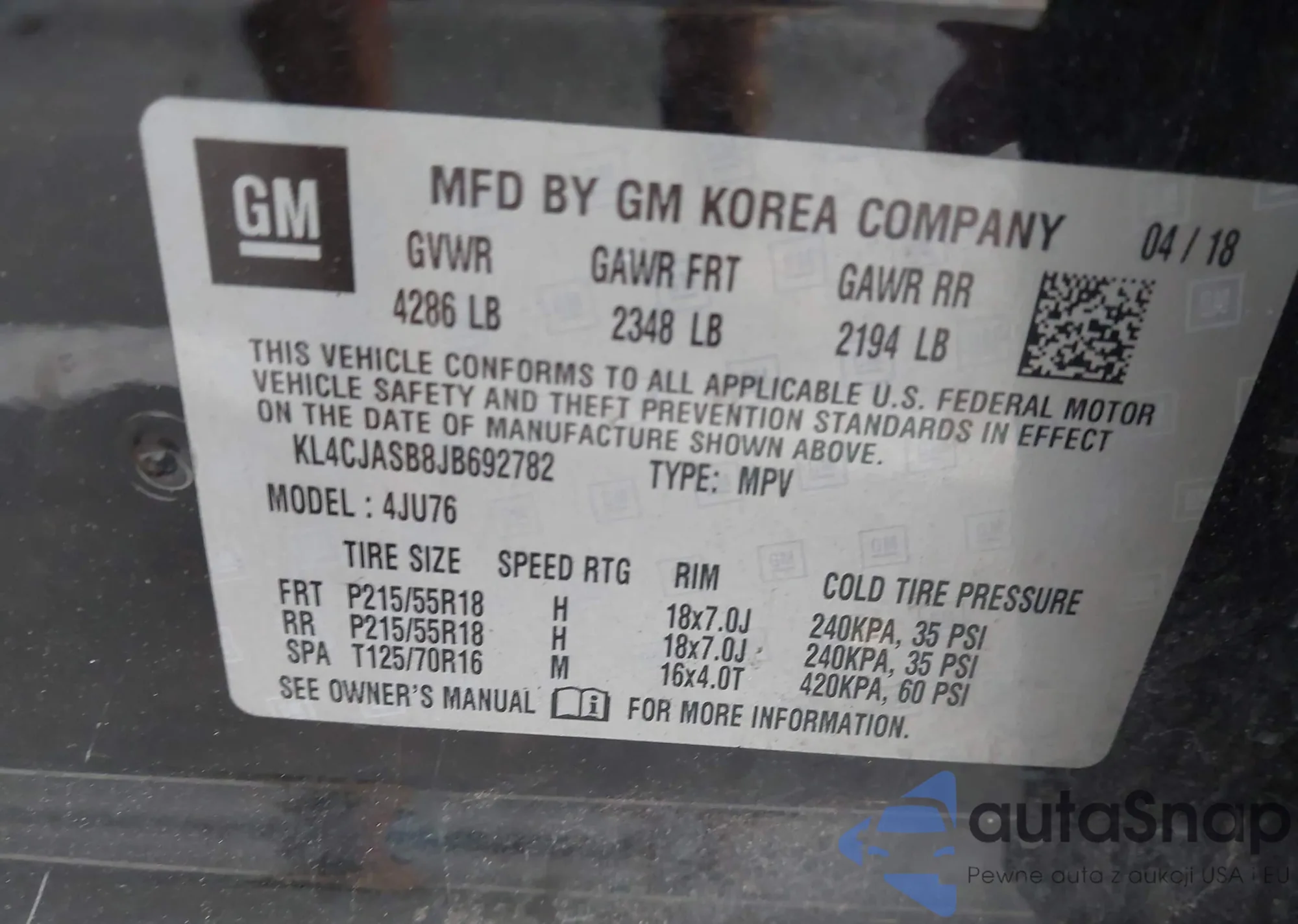 VIN: KL4CJASB8JB692782