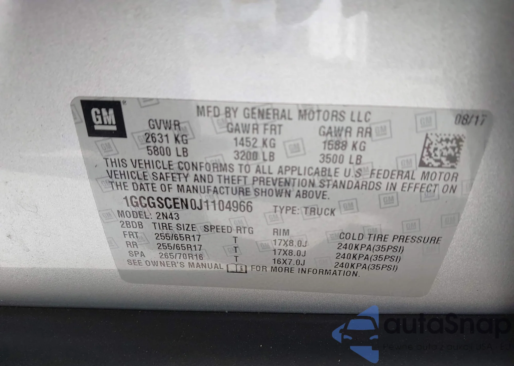 VIN: 1GCGSCEN0J1104966