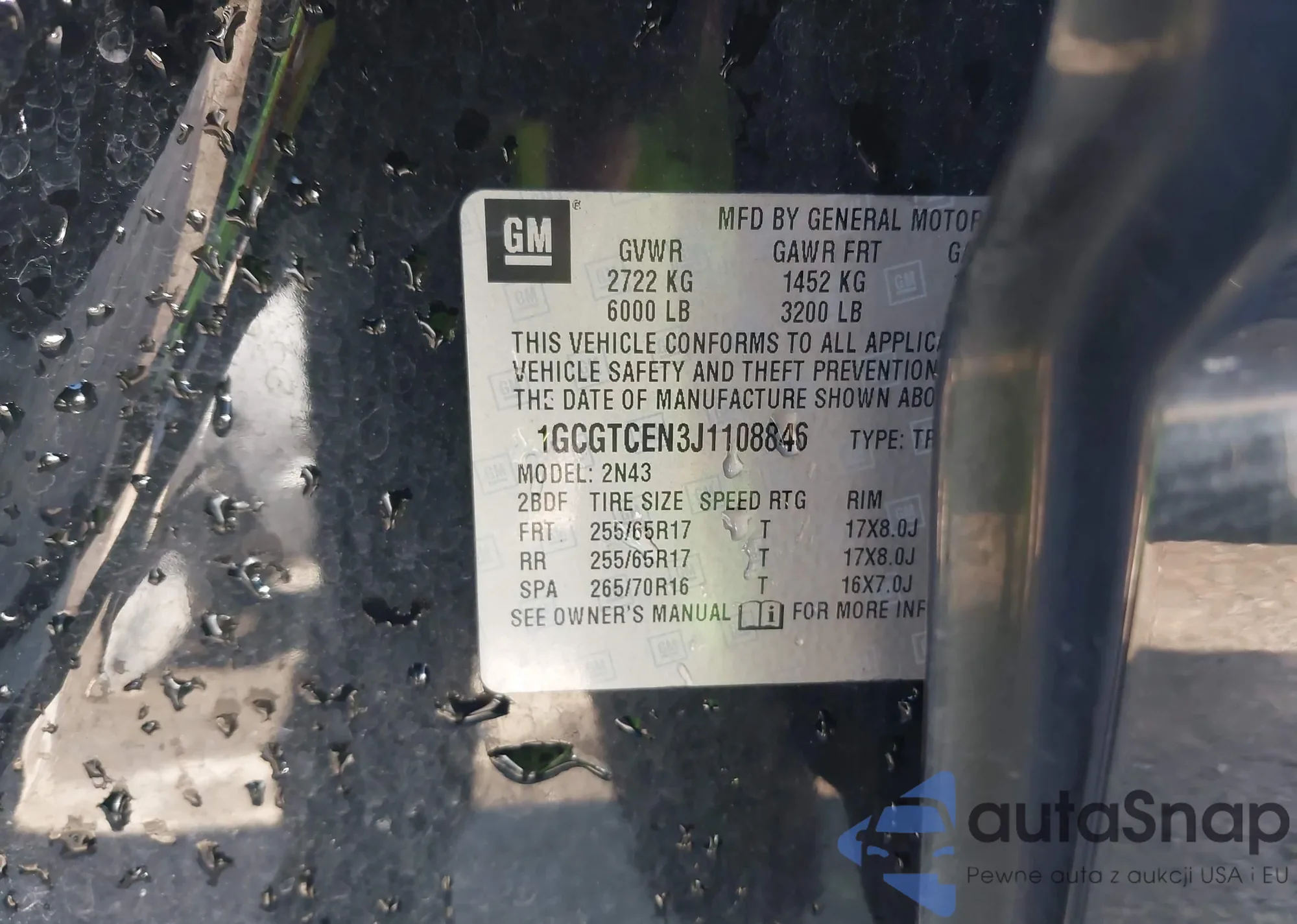 • VIN: 1GCGTCEN3J1108846