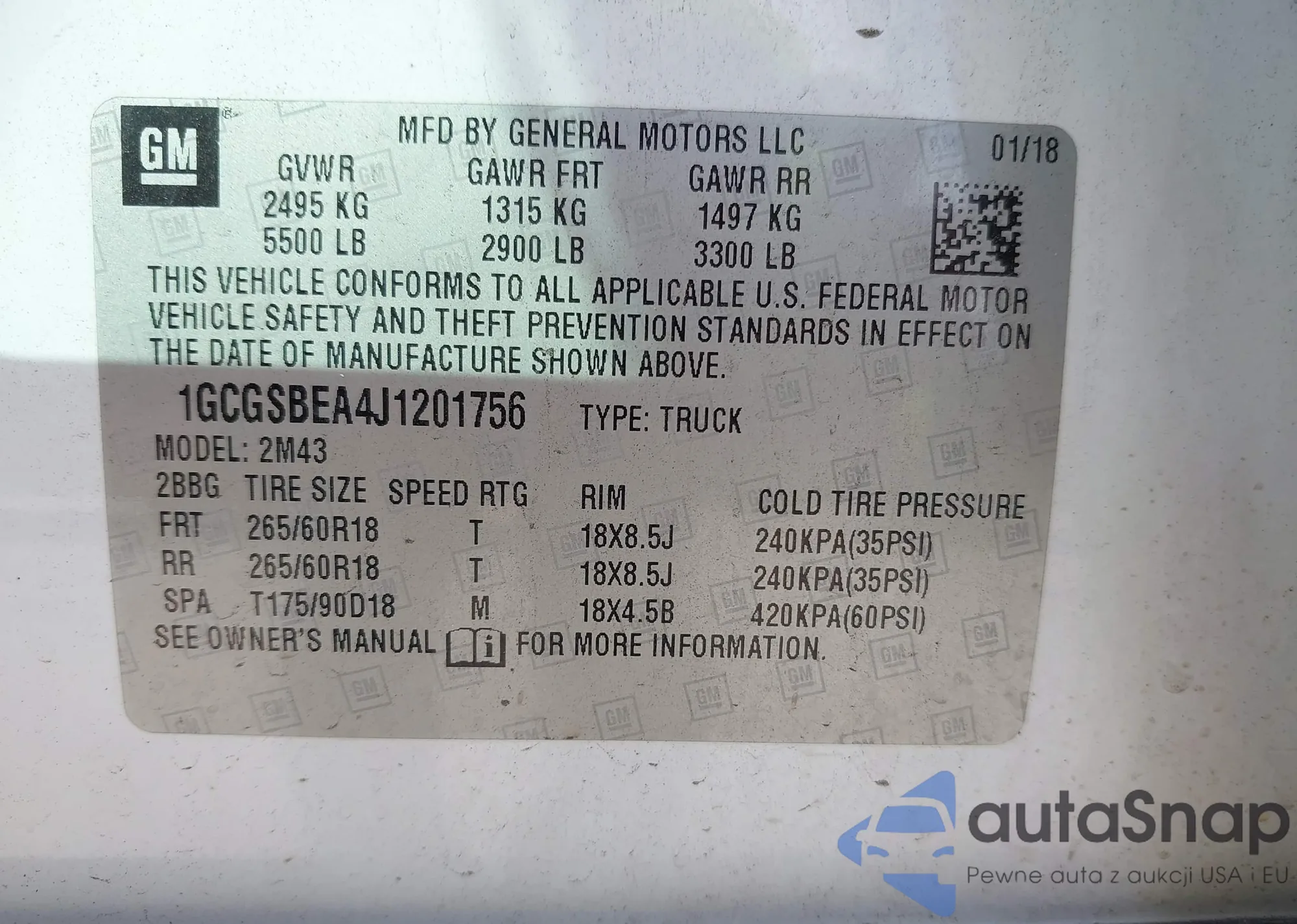 Samochód Chevrolet Colorado 2018 (VIN 1GCGSBEA4J1201756) nie był wcześniej licytowany. Dokumenty są czyste, przebieg odpowiada lub jest niższy niż średnia rynku. Sprzedaje go firma ubezpieczeniowa – polecamy zakup. Dostawa do portu zajmie ok. 6–8 tygodni.
