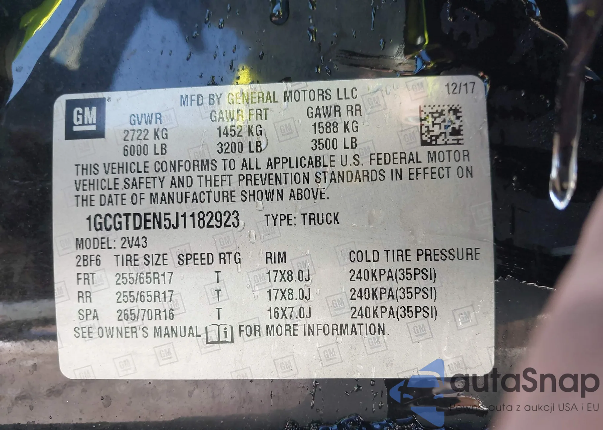Samochód Chevrolet Colorado 2018 (VIN 1GCGTDEN5J1182923) nie był wcześniej licytowany. Dokumenty są czyste, przebieg odpowiada lub jest niższy niż średnia rynku. Sprzedaje go firma ubezpieczeniowa – polecamy zakup. Dostawa do portu zajmie ok. 6–8 tygodni.