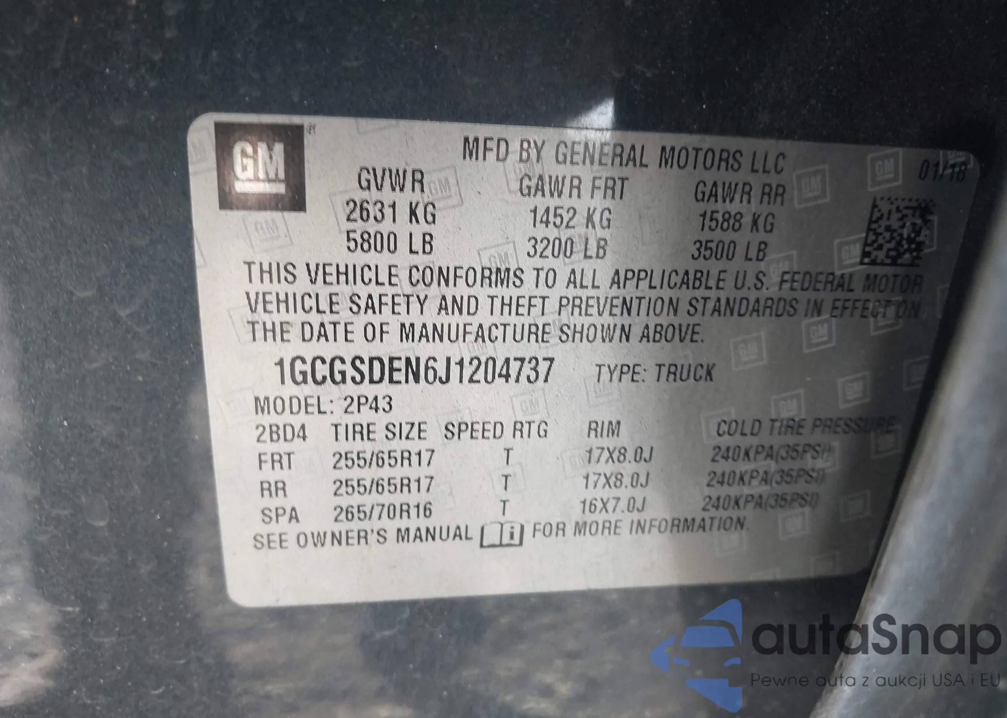 Samochód Chevrolet Colorado 2018 (VIN 1GCGSDEN6J1204737) nie był wcześniej licytowany. Dokumenty są czyste, przebieg odpowiada lub jest niższy niż średnia rynku. Sprzedaje go firma ubezpieczeniowa – polecamy zakup. Dostawa do portu zajmie ok. 6–8 tygodni.
