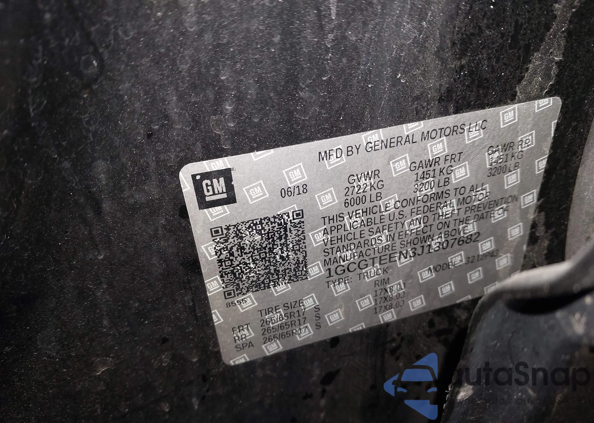 • VIN: 1GCGTEEN3J1307682