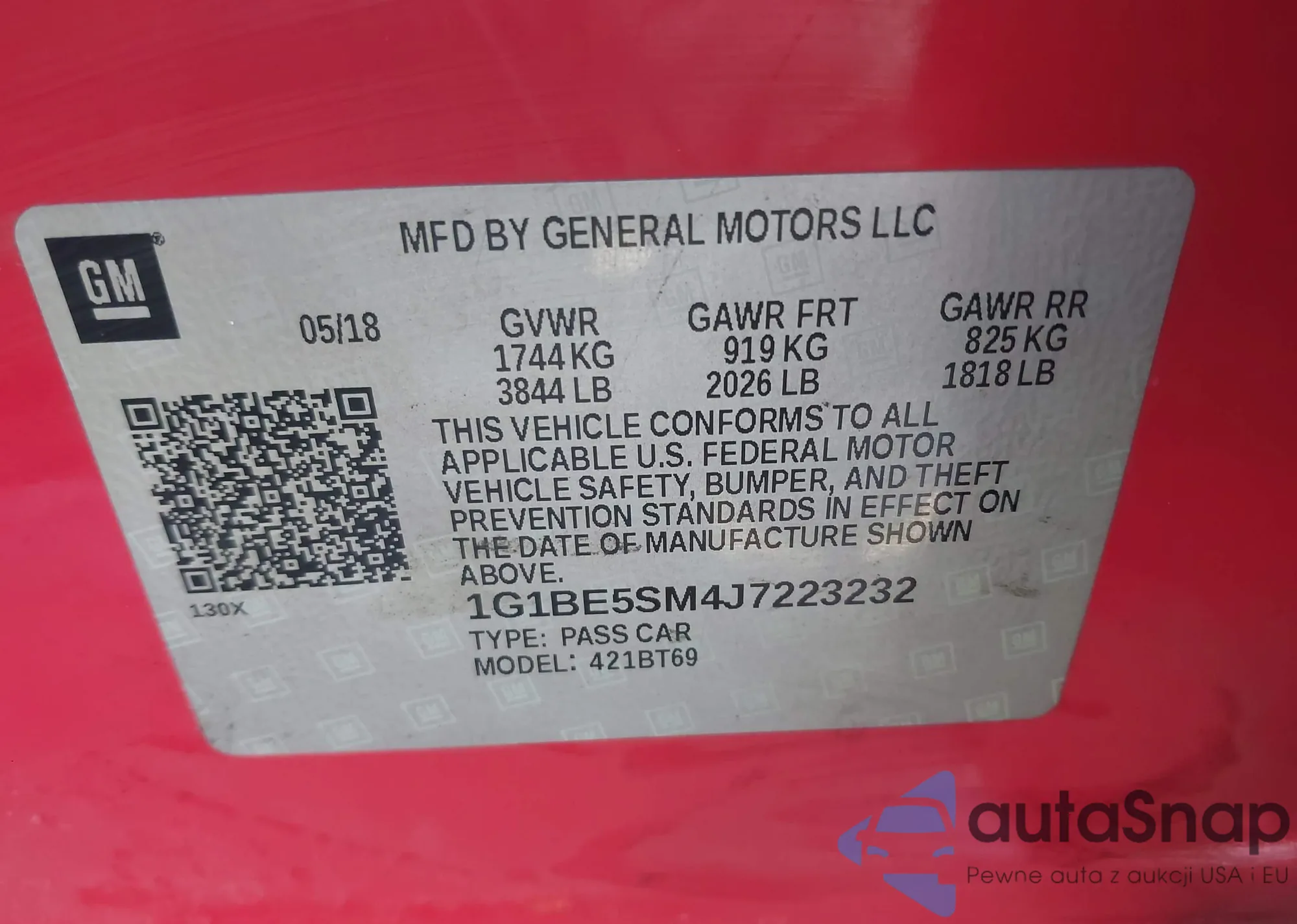 Samochód Chevrolet Cruze 2018 (VIN 1G1BE5SM4J7223232) nie był wcześniej licytowany. Dokumenty są czyste, przebieg odpowiada lub jest niższy niż średnia rynku. Sprzedaje go firma ubezpieczeniowa – polecamy zakup. Dostawa do portu zajmie ok. 6–8 tygodni.