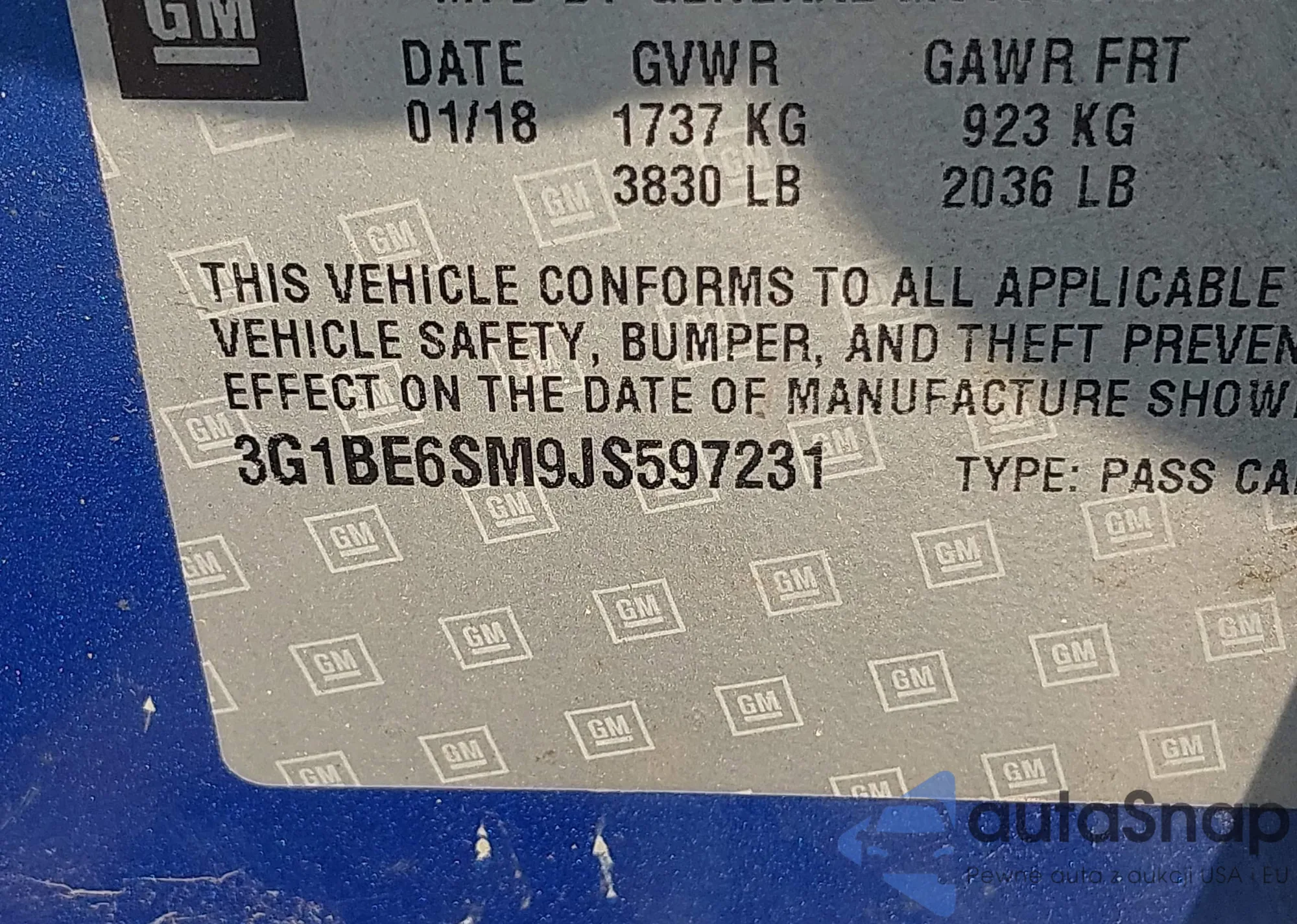 VIN: 3G1BE6SM9JS597231