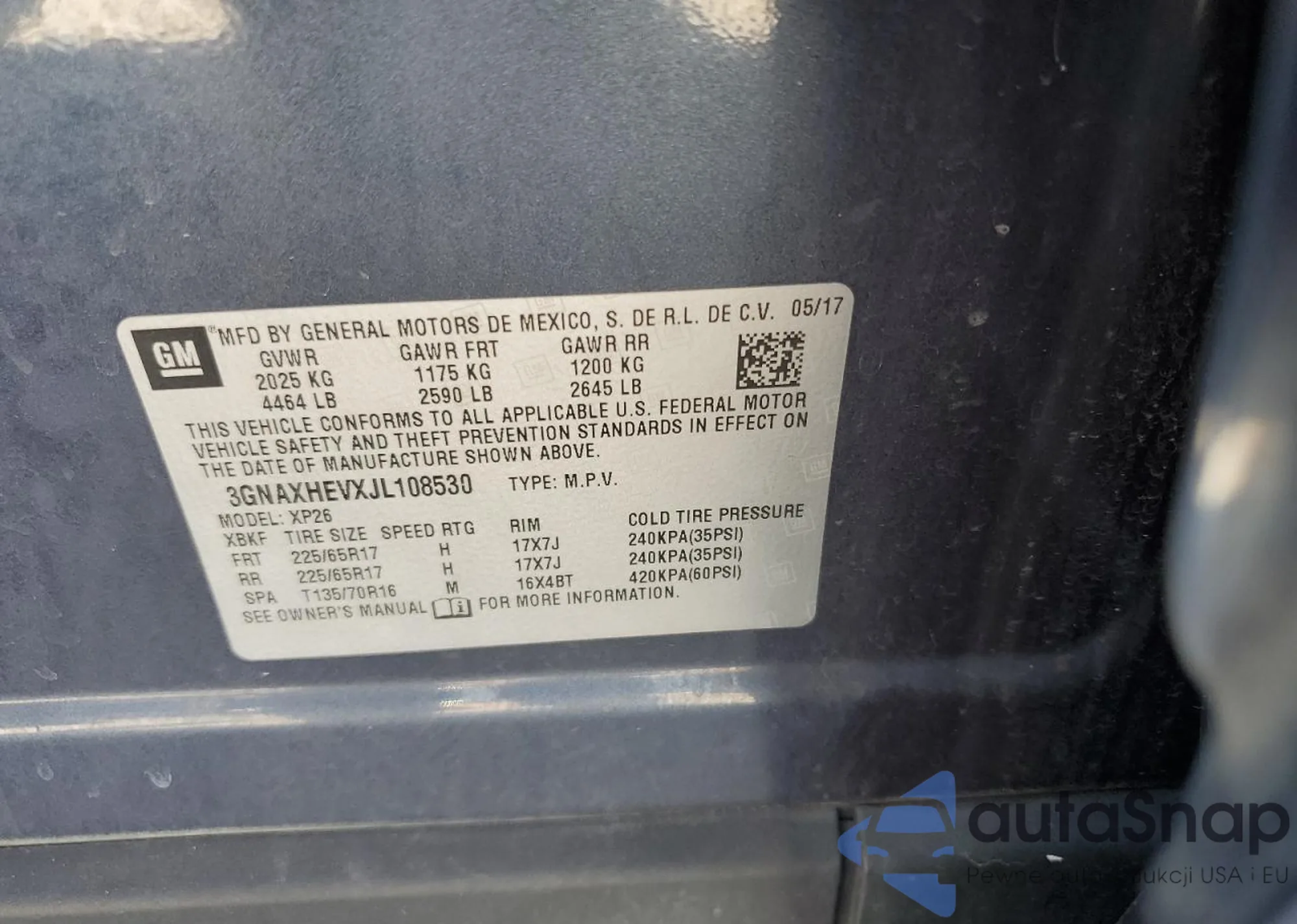 VIN: 3GNAXHEVXJL108530