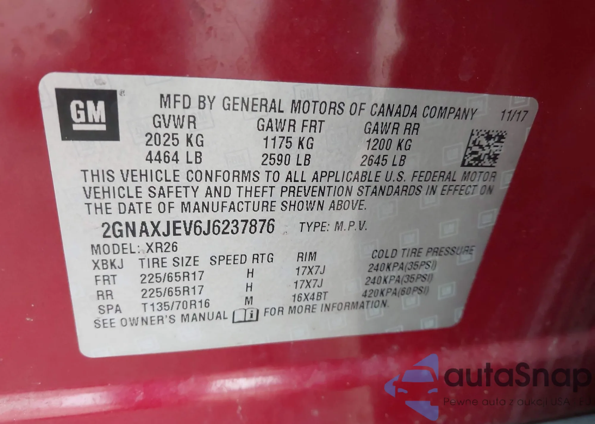 VIN: 2GNAXJEV6J6237876