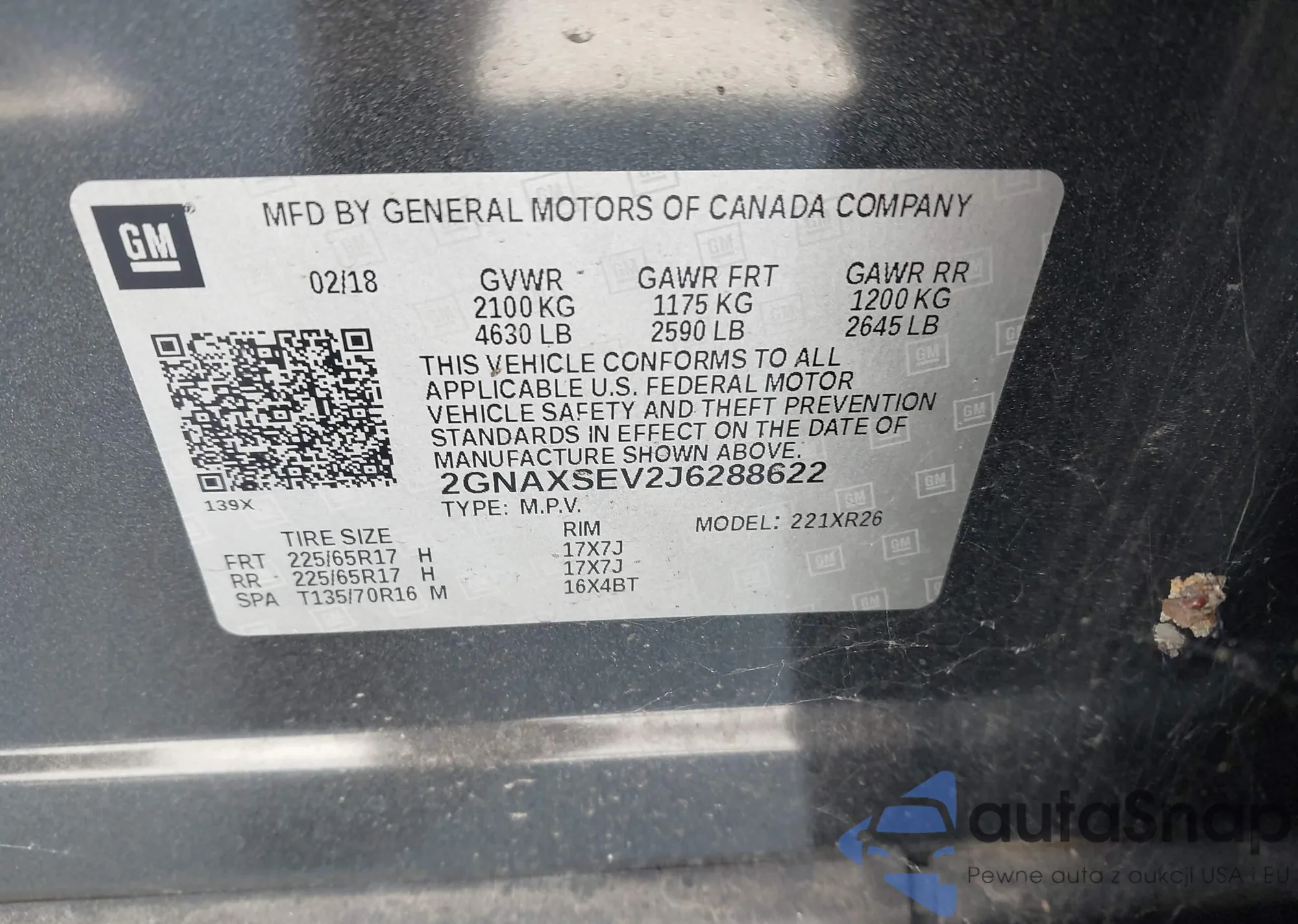 VIN: 2GNAXSEV2J6288622