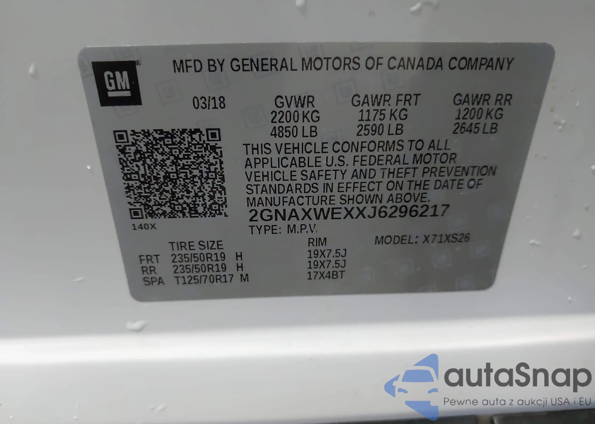 VIN: 2GNAXWEXXJ6296217
