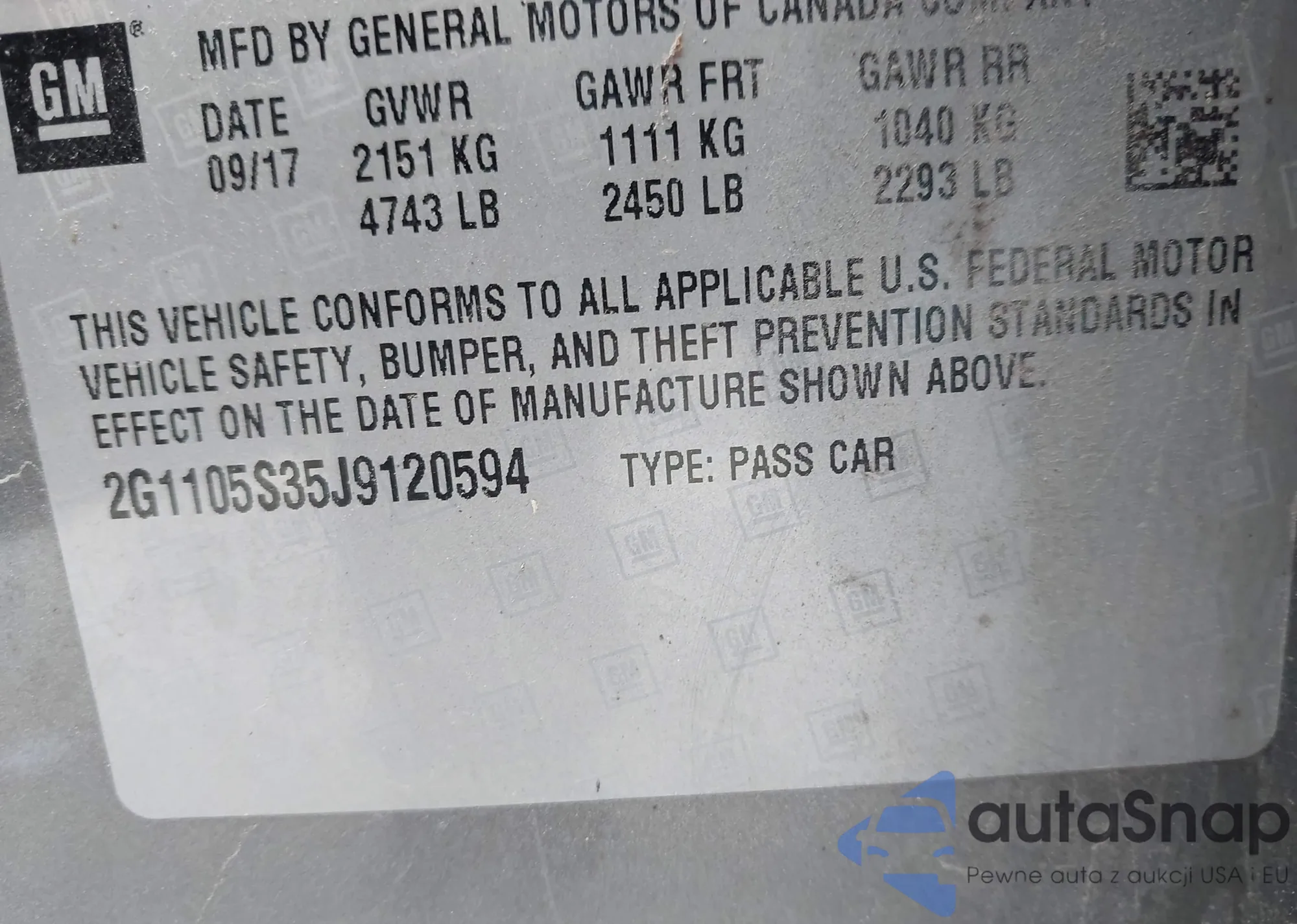 Samochód Chevrolet Impala 2018 (VIN 2G1105S35J9120594) nie był wcześniej licytowany. Dokumenty są czyste, przebieg odpowiada lub jest niższy niż średnia rynku. Sprzedaje go firma ubezpieczeniowa – polecamy zakup. Dostawa do portu zajmie ok. 6–8 tygodni.
