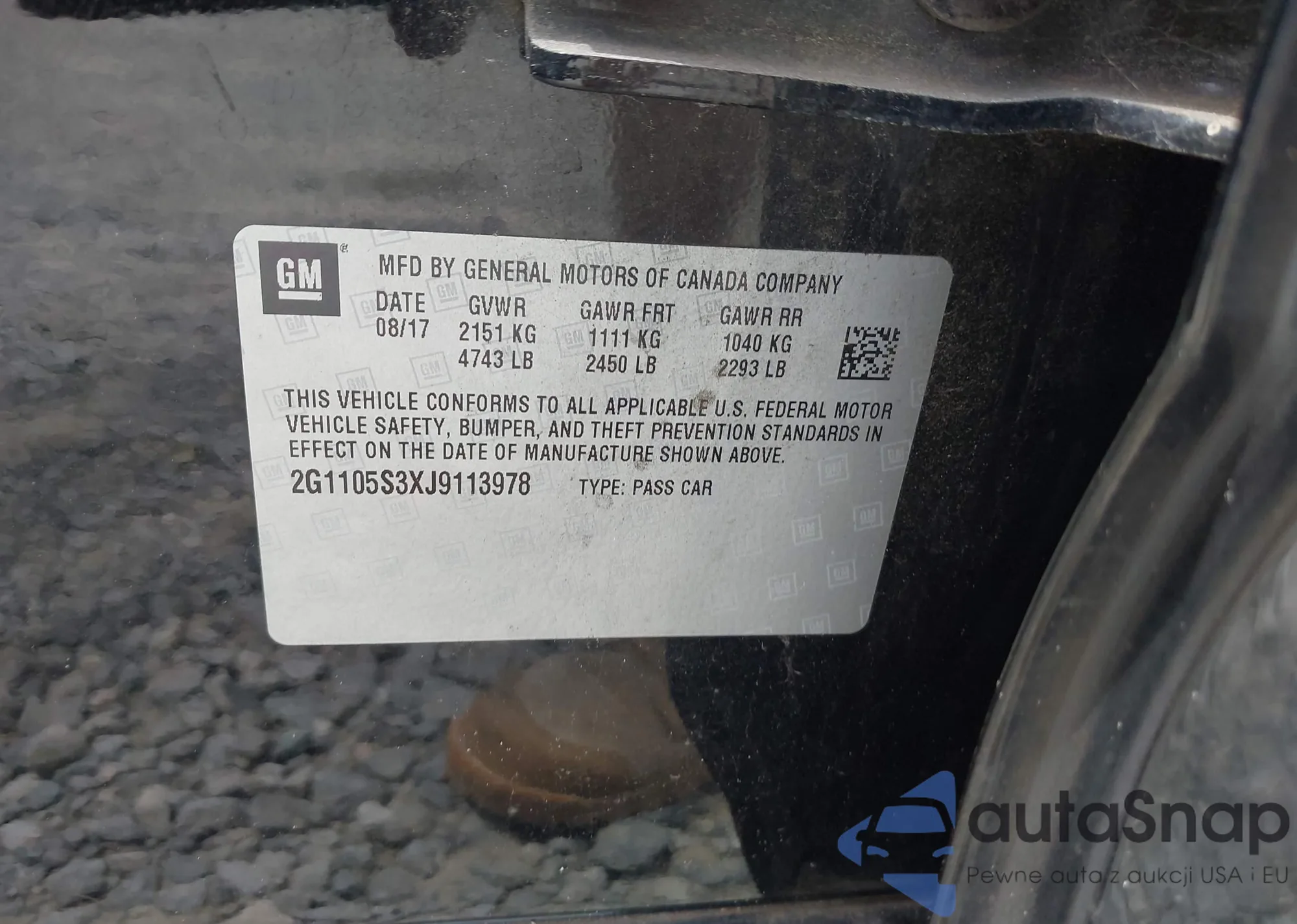 VIN: 2G1105S3XJ9113978