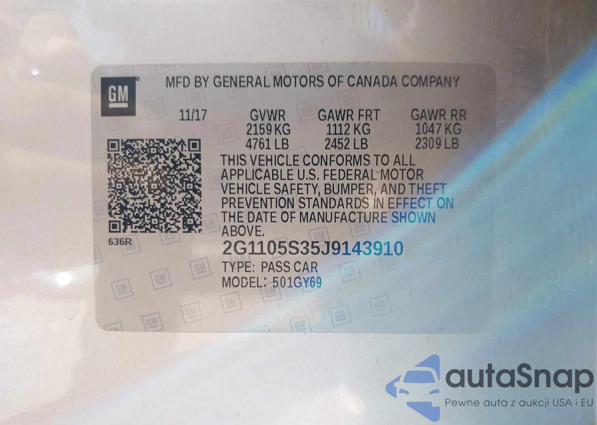 • VIN: 2G1105S35J9143910