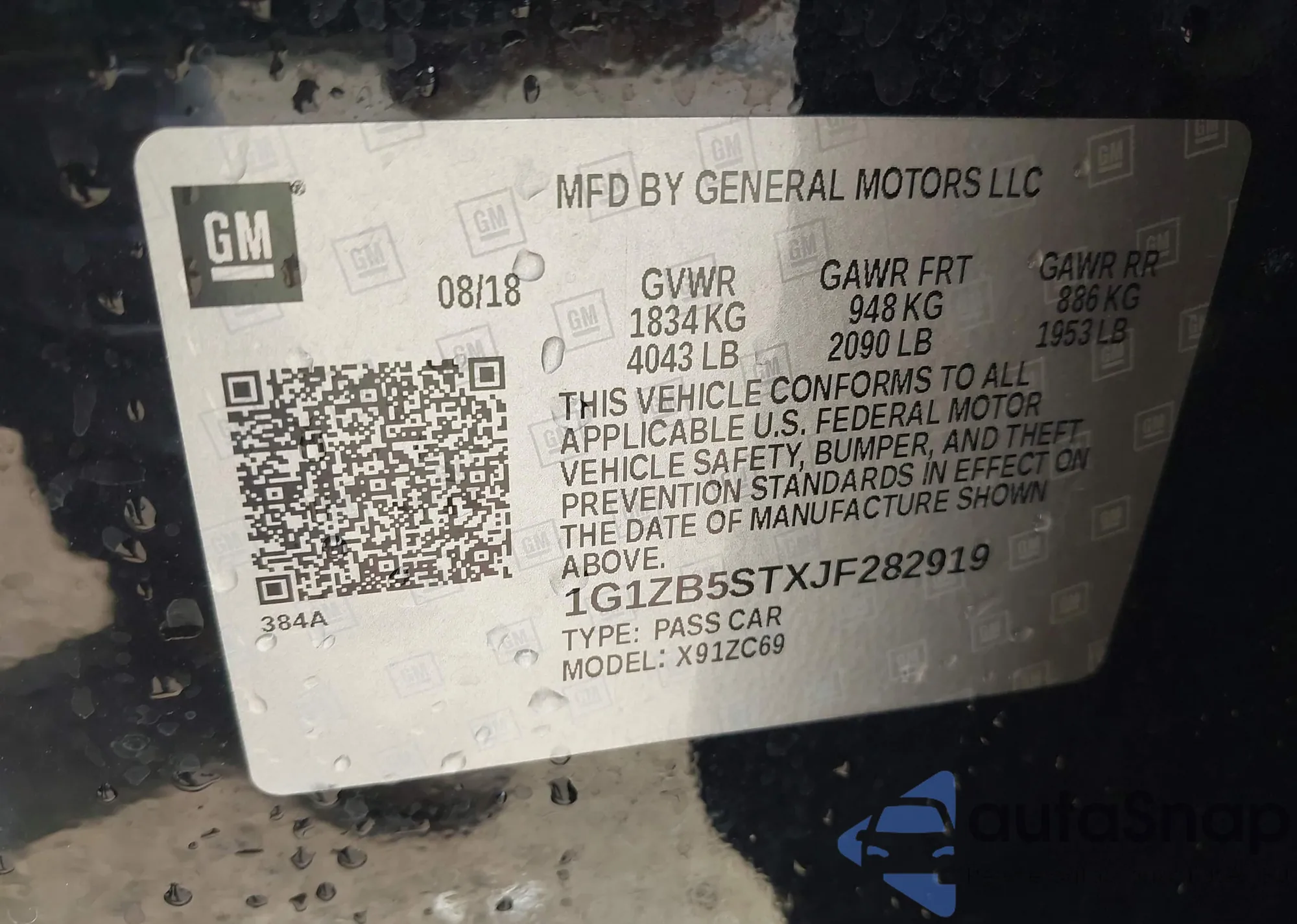 VIN: 1G1ZB5STXJF282919