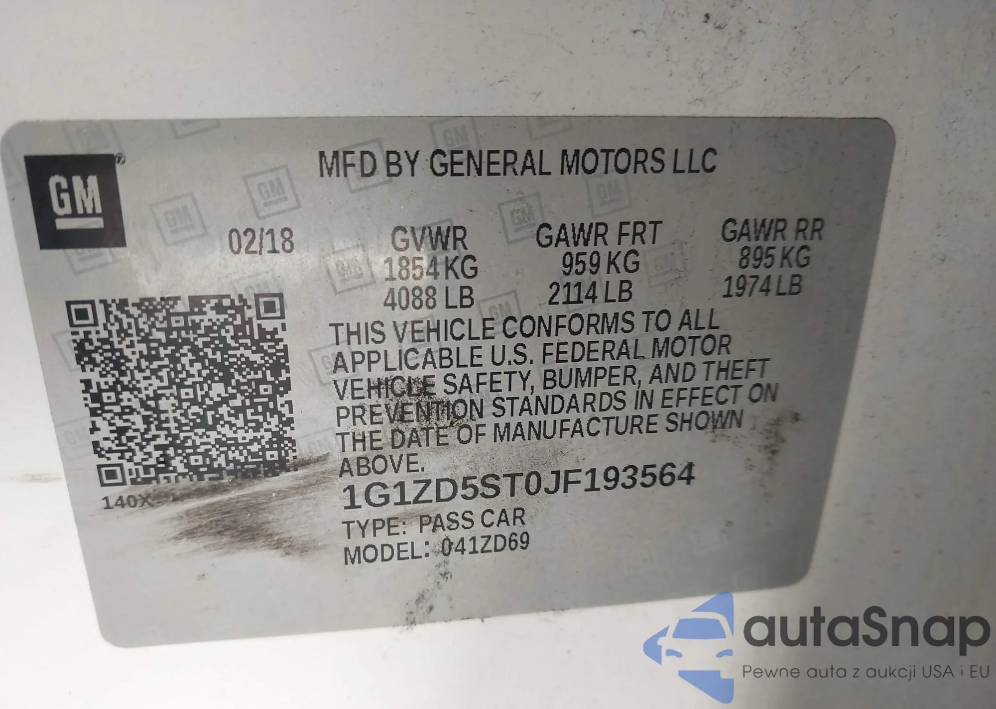 VIN: 1G1ZD5ST0JF193564