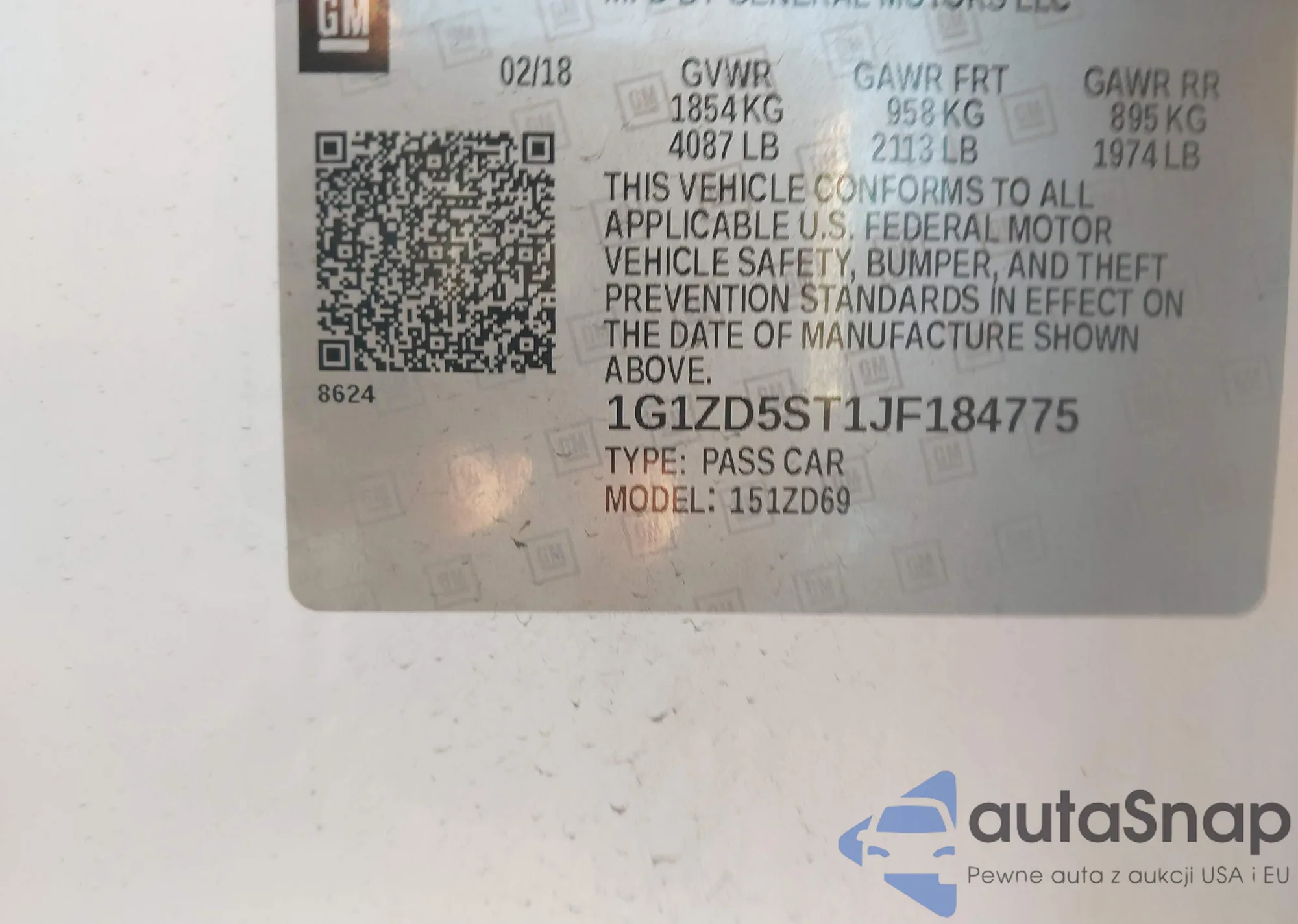 VIN: 1G1ZD5ST1JF184775