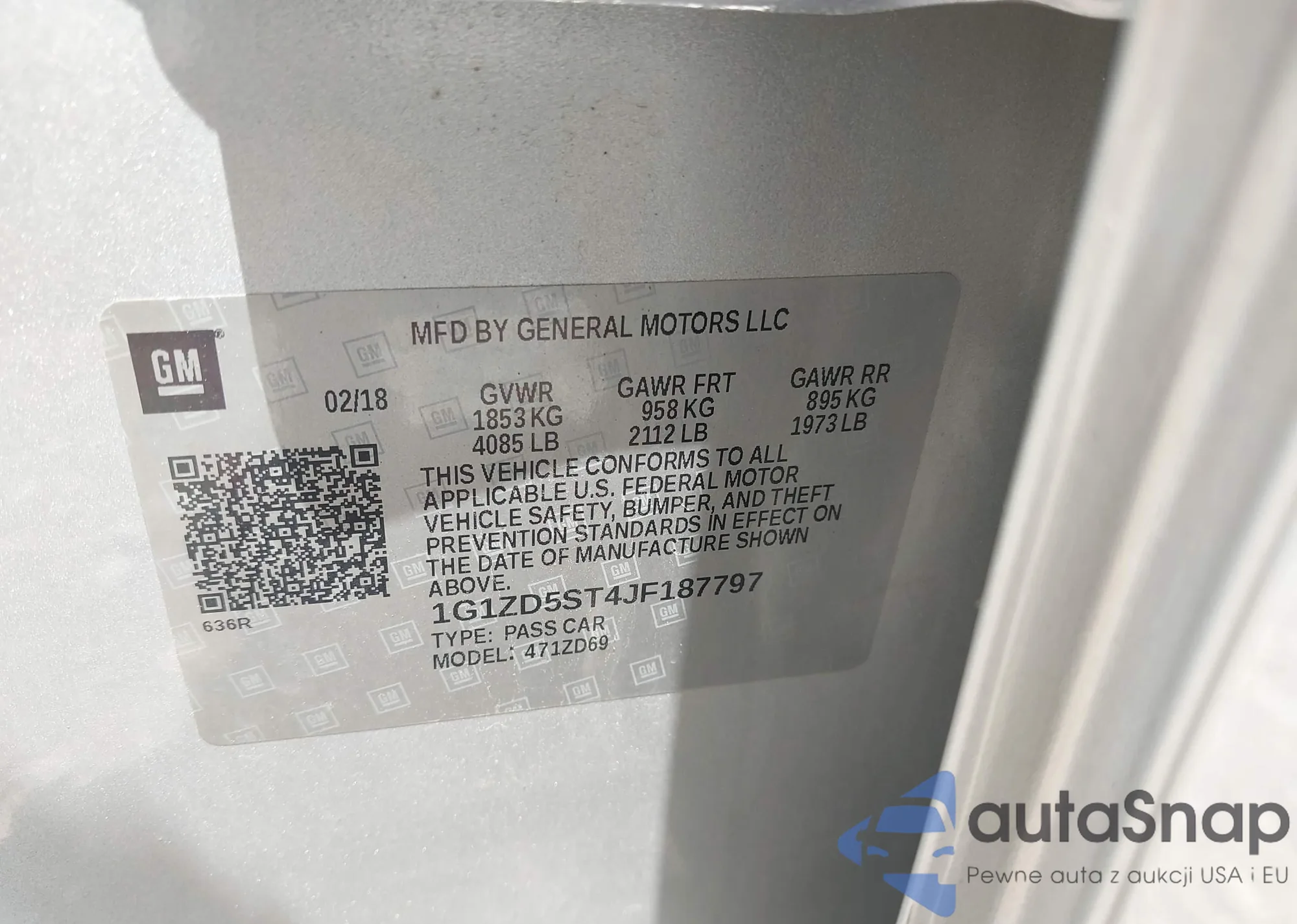VIN: 1G1ZD5ST4JF187797