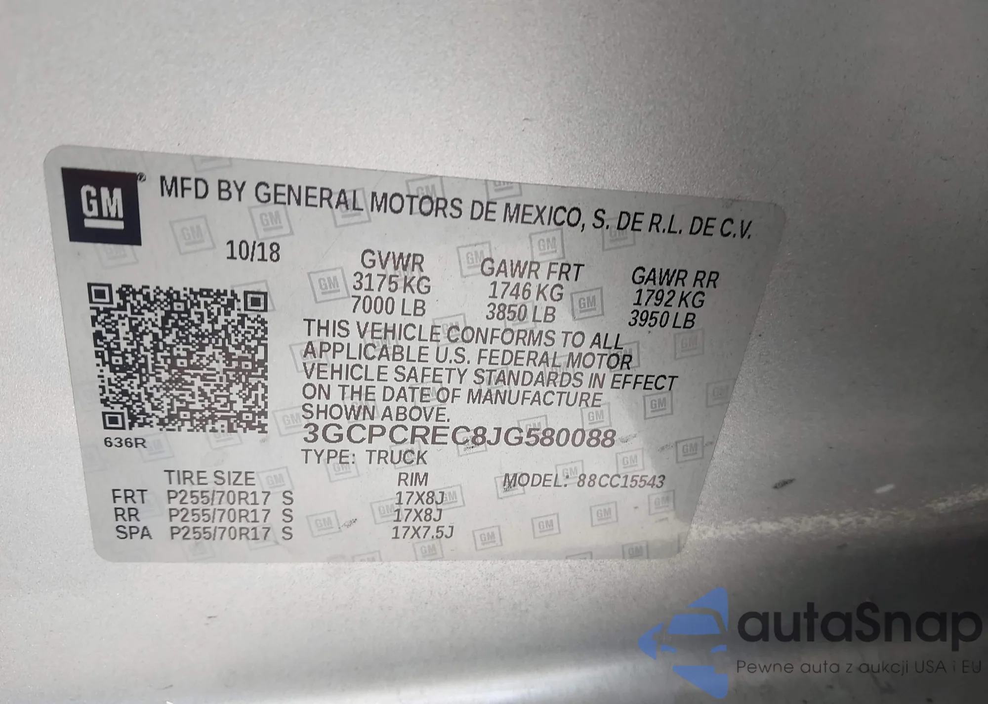 VIN: 3GCPCREC8JG580088