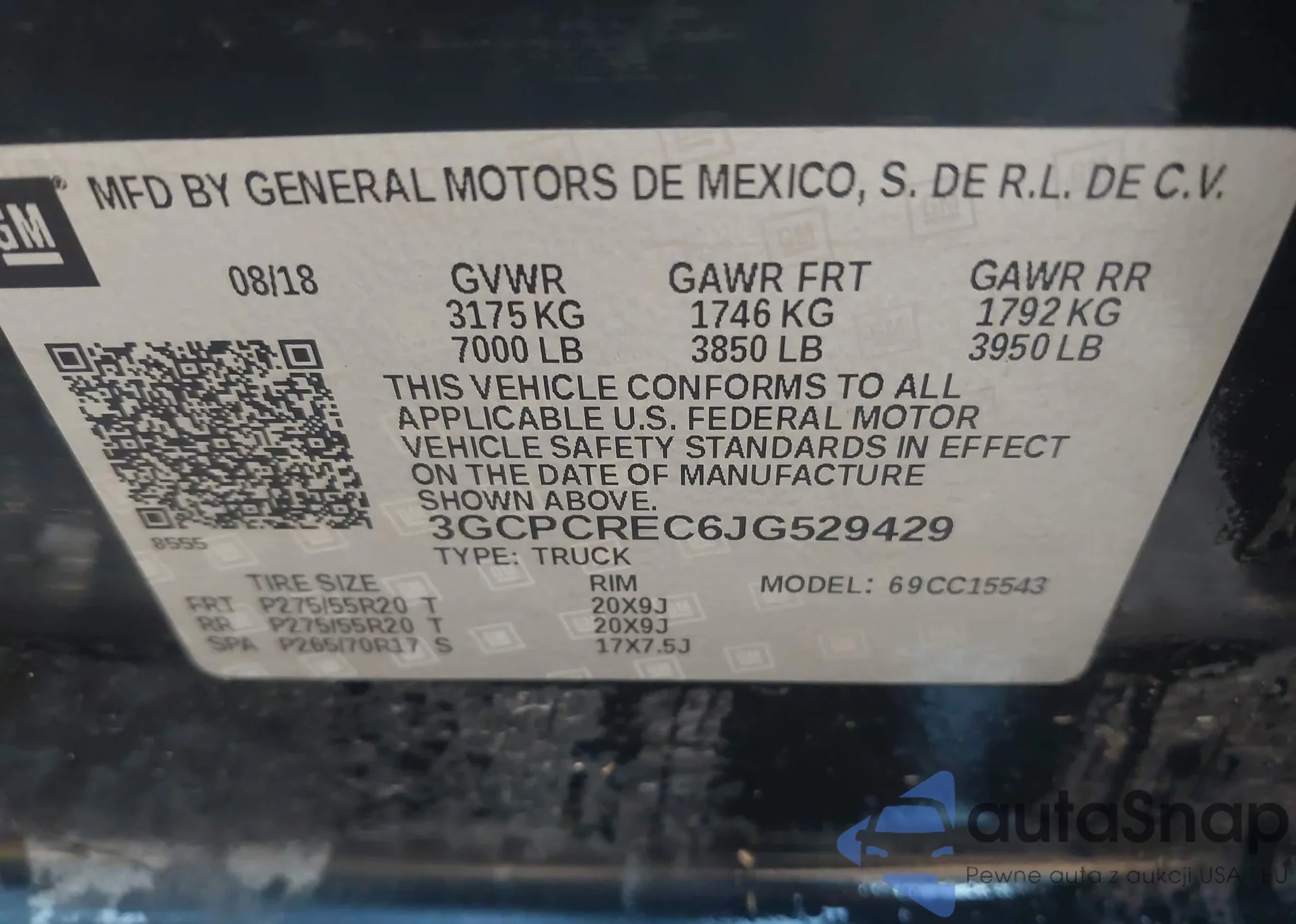 VIN: 3GCPCREC6JG529429
