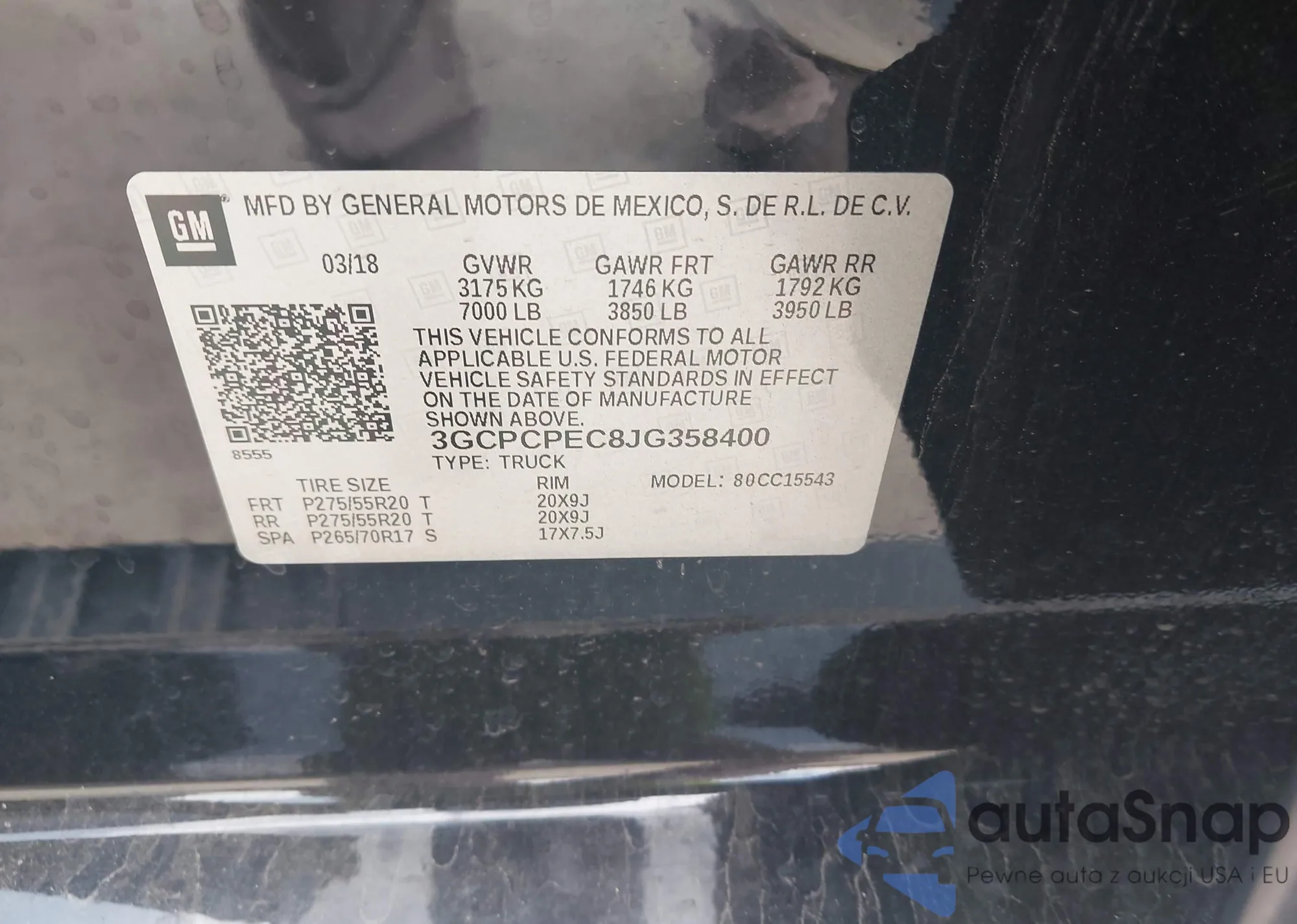 VIN: 3GCPCPEC8JG358400