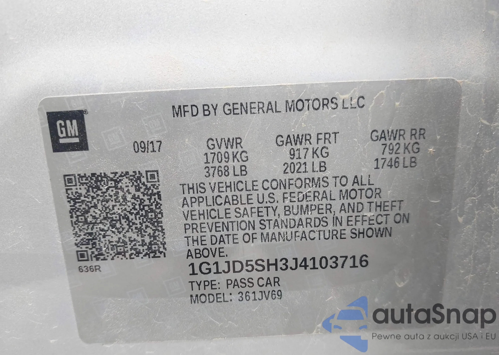 VIN: 1G1JD5SH3J4103716