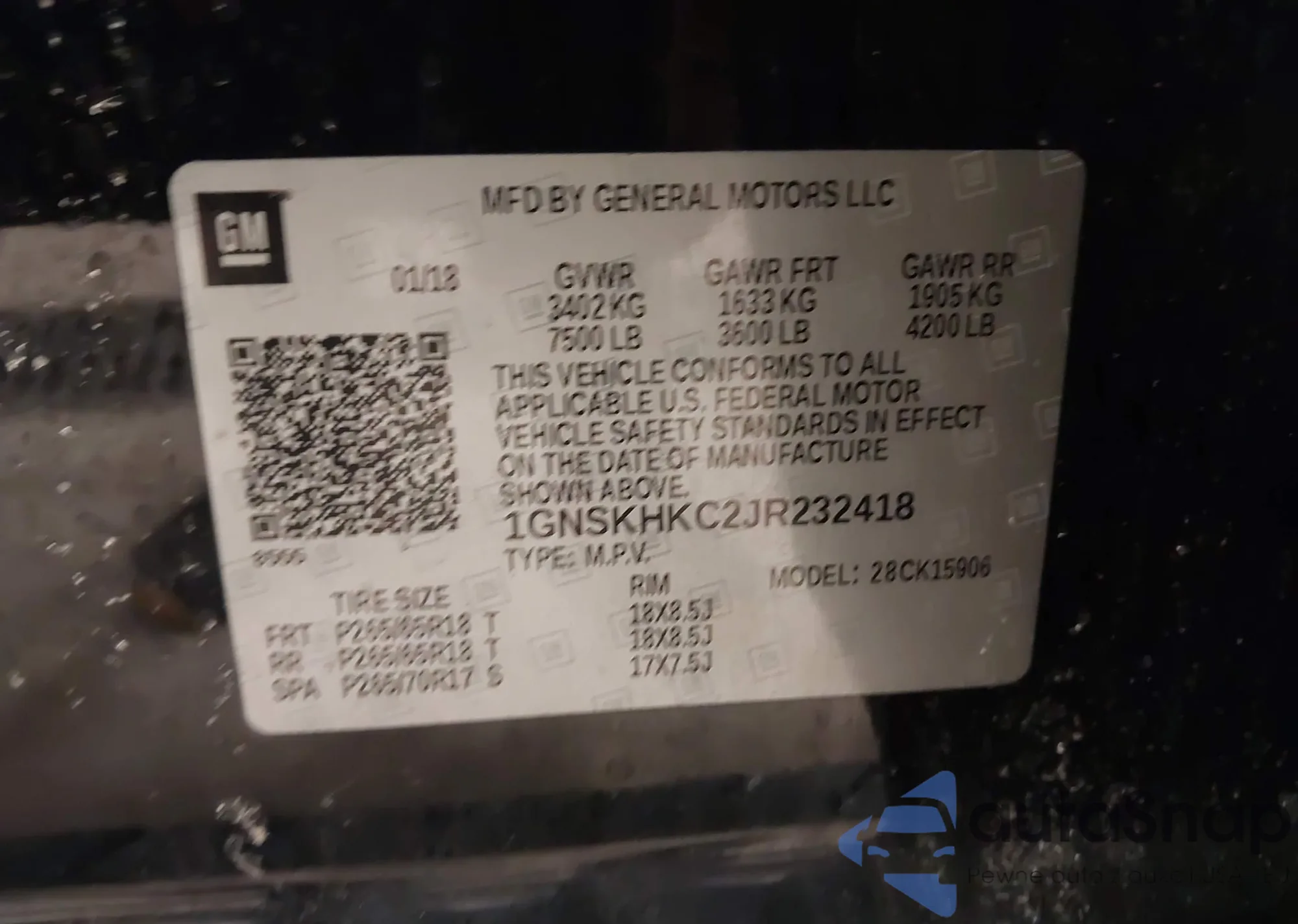 • VIN: 1GNSKHKC2JR232418