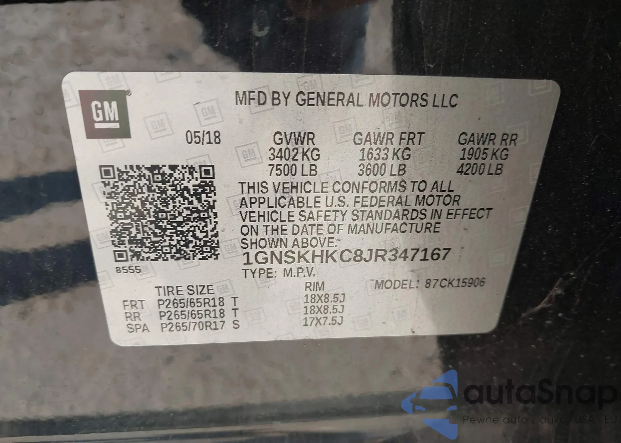 VIN: 1GNSKHKC8JR347167