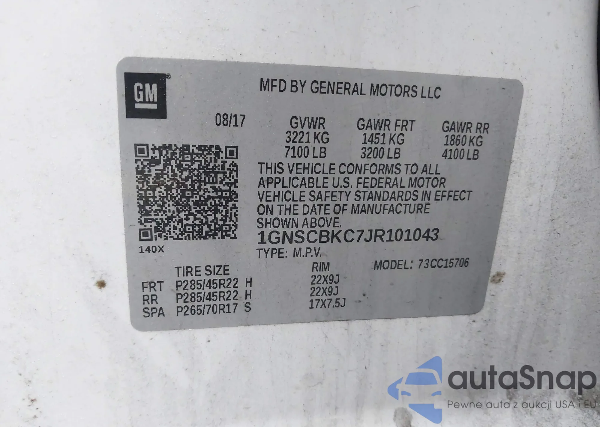 VIN: 1GNSCBKC7JR101043