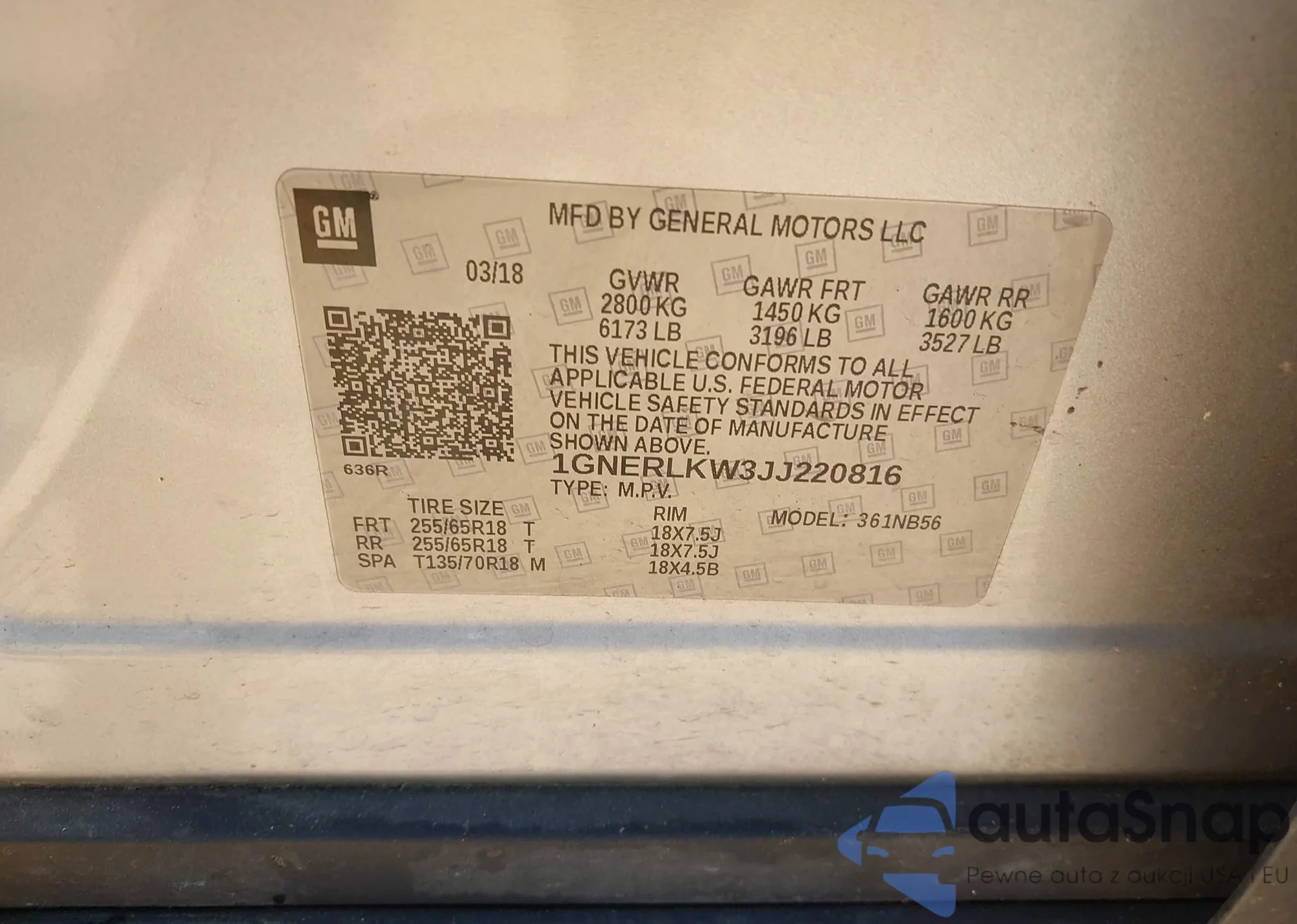 VIN: 1GNERLKW3JJ220816