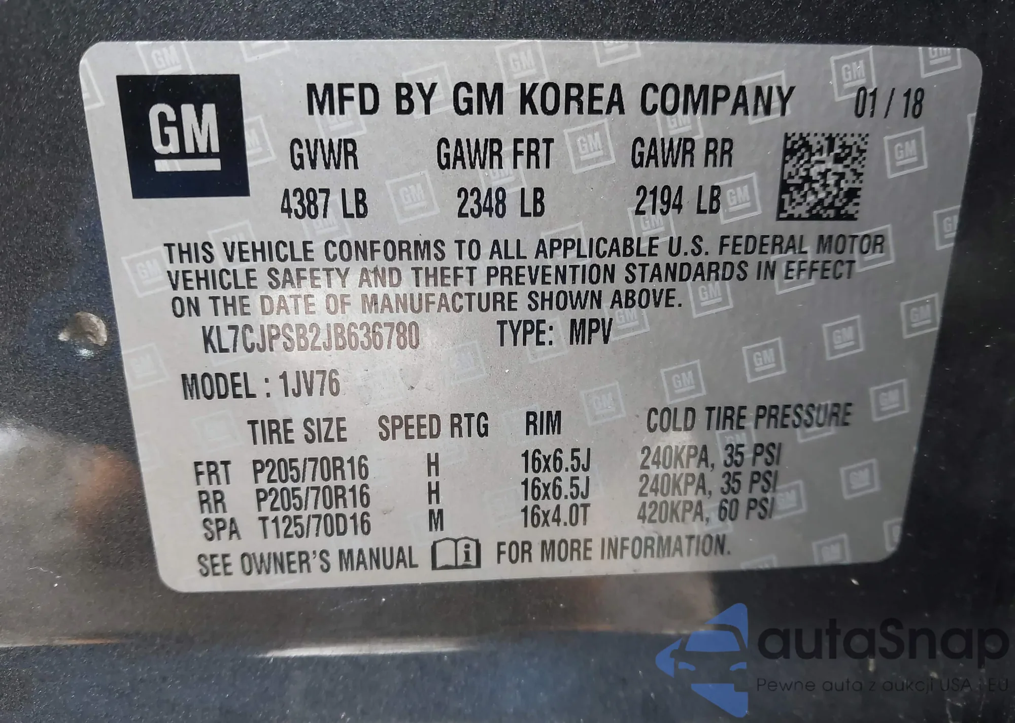 Samochód Chevrolet Trax 2018 (VIN KL7CJPSB2JB636780) nie był wcześniej licytowany. Dokumenty są czyste, przebieg odpowiada lub jest niższy niż średnia rynku. Sprzedaje go firma ubezpieczeniowa – polecamy zakup. Dostawa do portu zajmie ok. 6–8 tygodni.