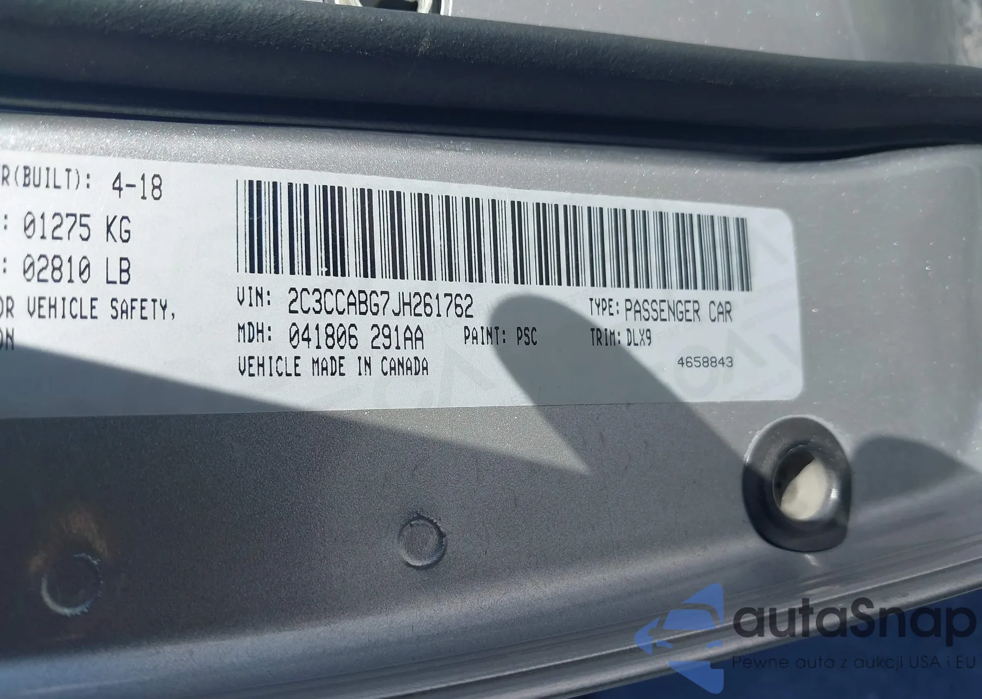 Samochód Chrysler 300 2018 (VIN 2C3CCABG7JH261762) nie był wcześniej licytowany. Dokumenty są czyste, przebieg odpowiada lub jest niższy niż średnia rynku. Sprzedaje go firma ubezpieczeniowa – polecamy zakup. Dostawa do portu zajmie ok. 6–8 tygodni.