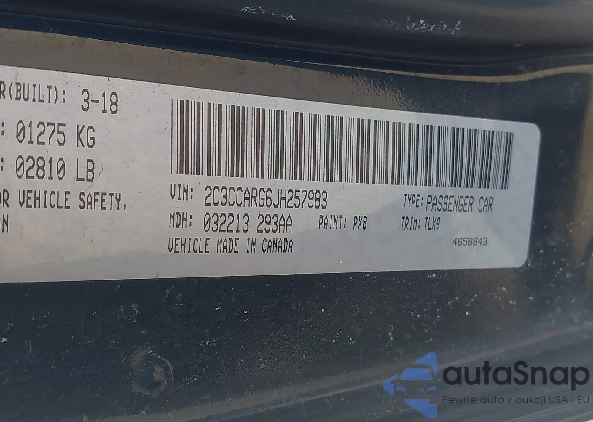 Samochód Chrysler 300 2018 (VIN 2C3CCARG6JH257983) nie był wcześniej licytowany. Dokumenty są czyste, przebieg odpowiada lub jest niższy niż średnia rynku. Sprzedaje go firma ubezpieczeniowa – polecamy zakup. Dostawa do portu zajmie ok. 6–8 tygodni.