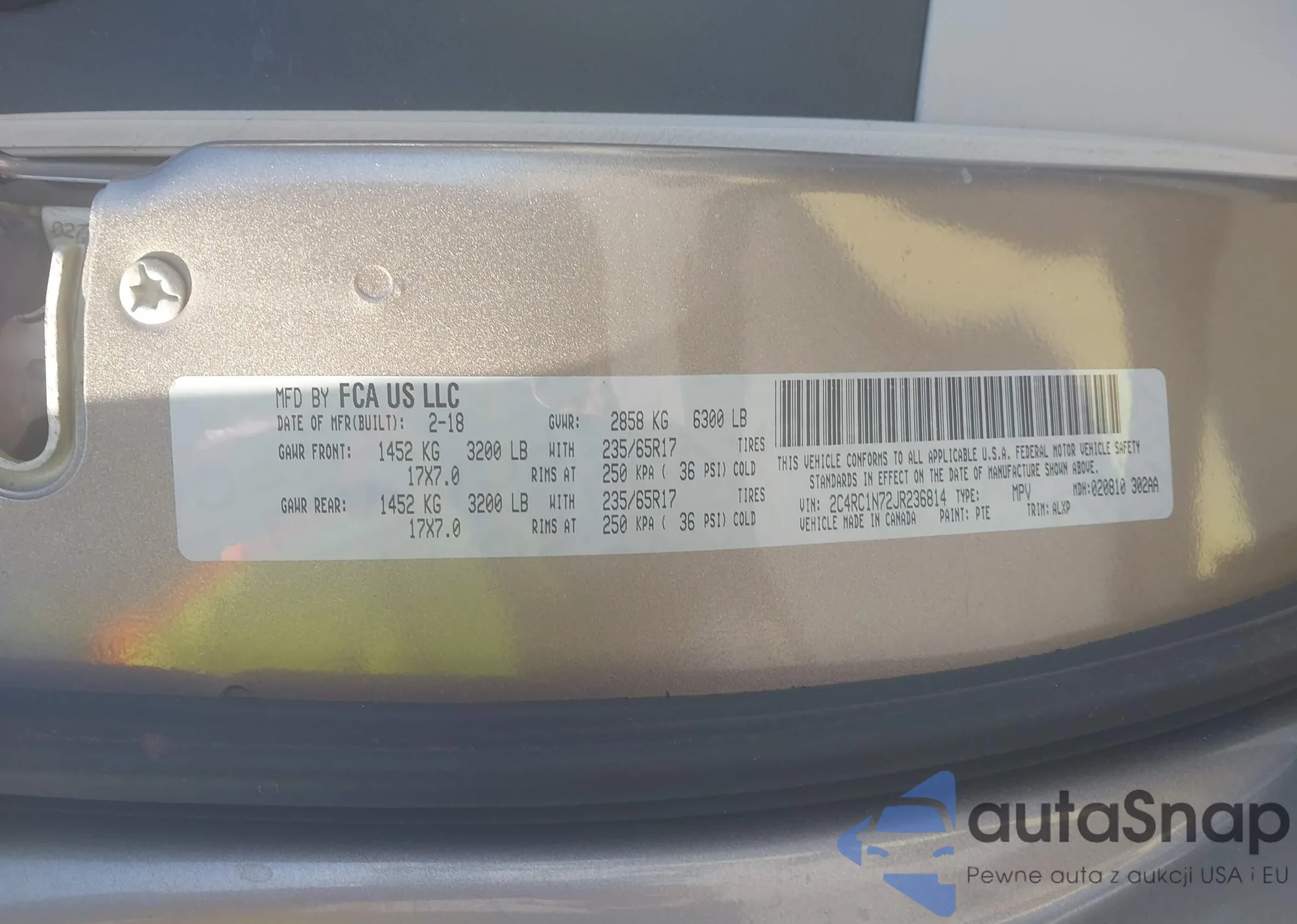 • VIN: 2C4RC1N72JR236814