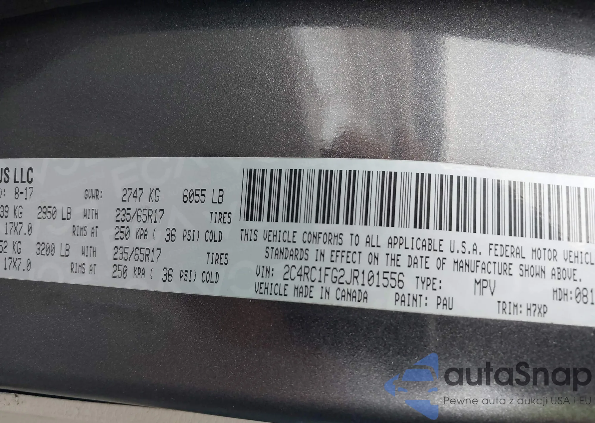 • VIN: 2C4RC1FG2JR101556