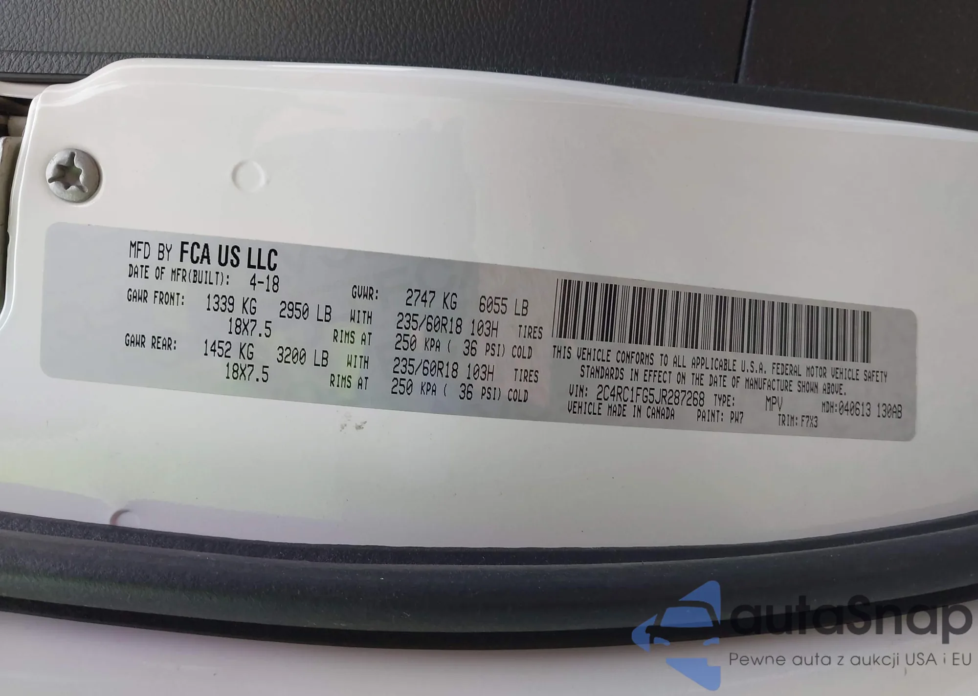 VIN: 2C4RC1FG5JR287268