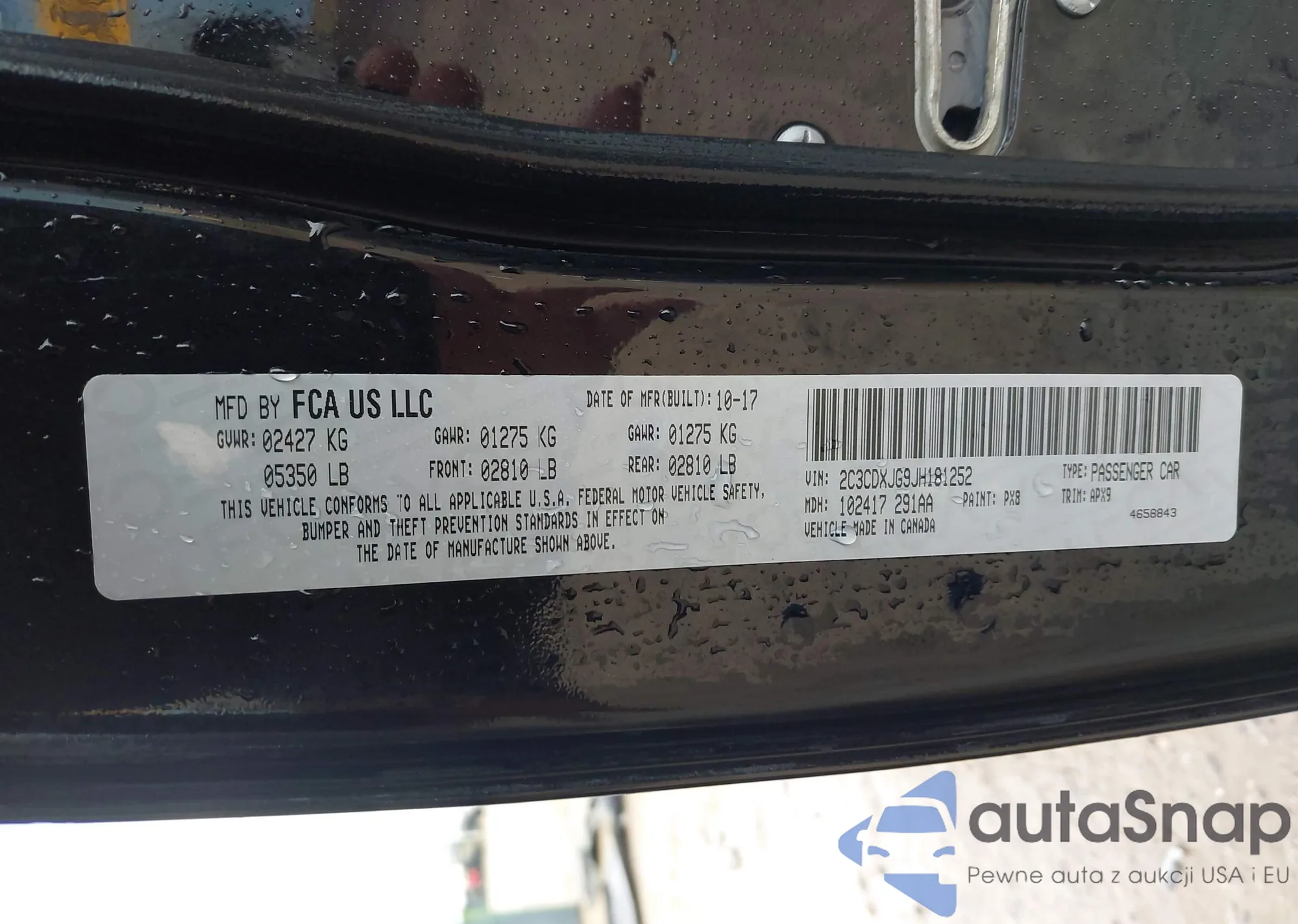 • VIN: 2C3CDXJG9JH181252