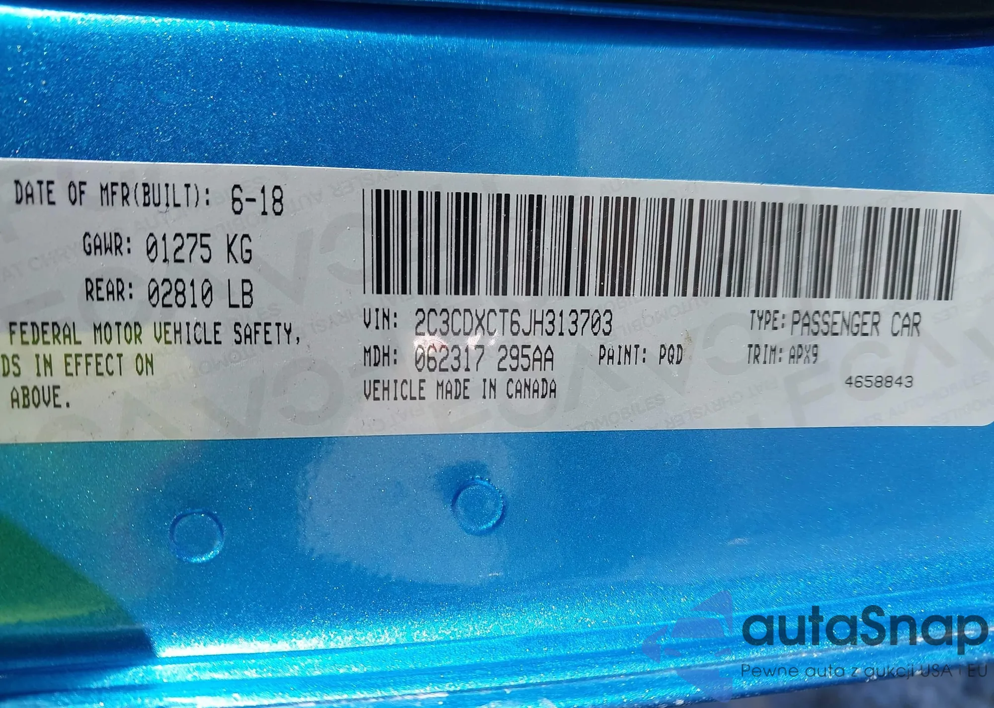 Samochód Dodge Charger 2018 (VIN 2C3CDXCT6JH313703) nie był wcześniej licytowany. Dokumenty są czyste, przebieg odpowiada lub jest niższy niż średnia rynku. Sprzedaje go firma ubezpieczeniowa – polecamy zakup. Dostawa do portu zajmie ok. 6–8 tygodni.