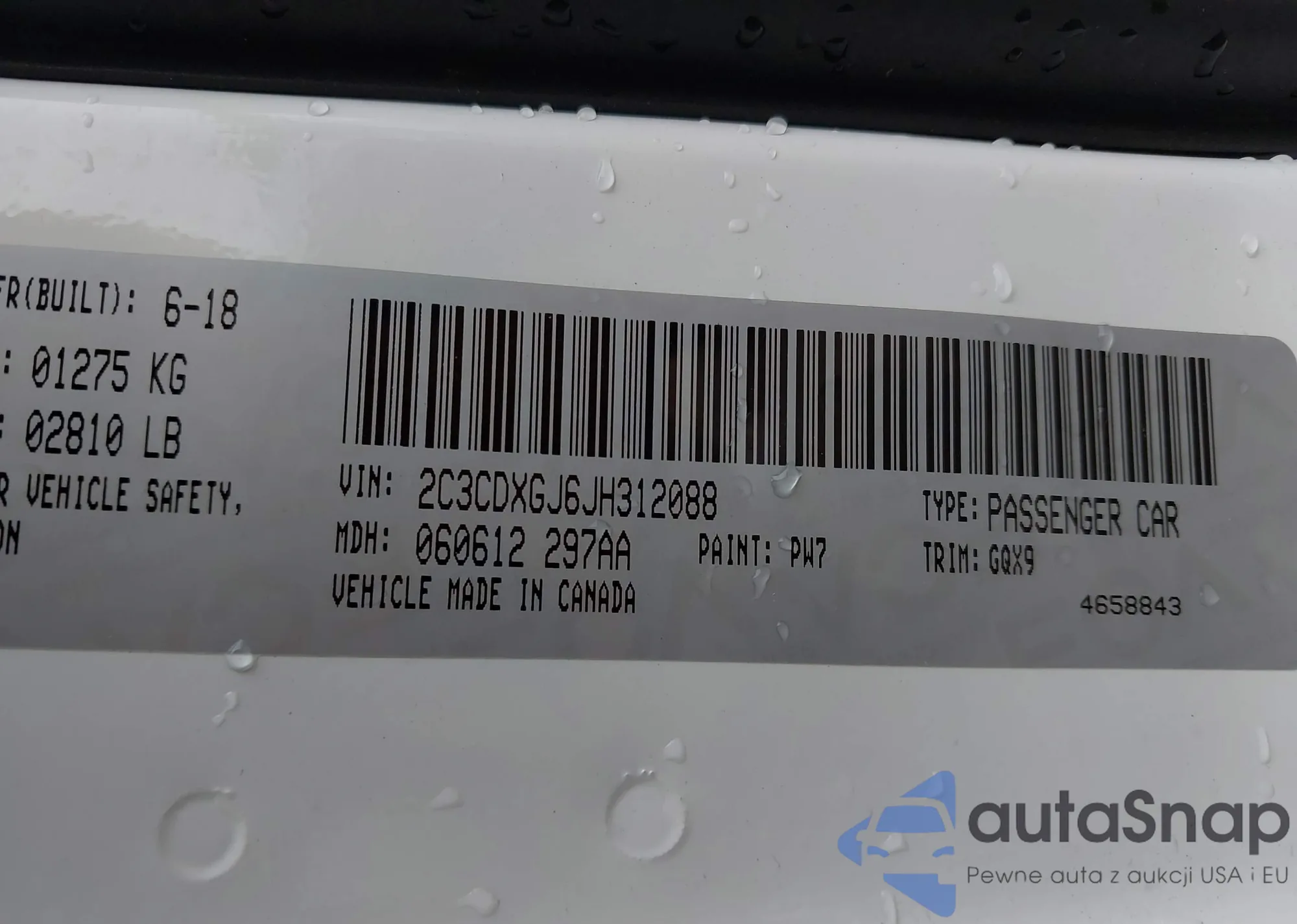 • VIN: 2C3CDXGJ6JH312088