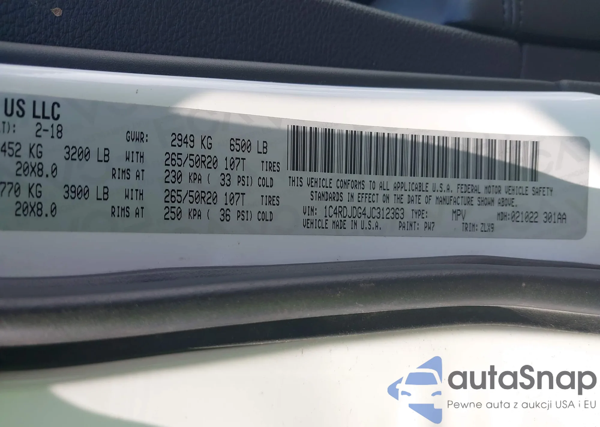 VIN: 1C4RDJDG4JC312363