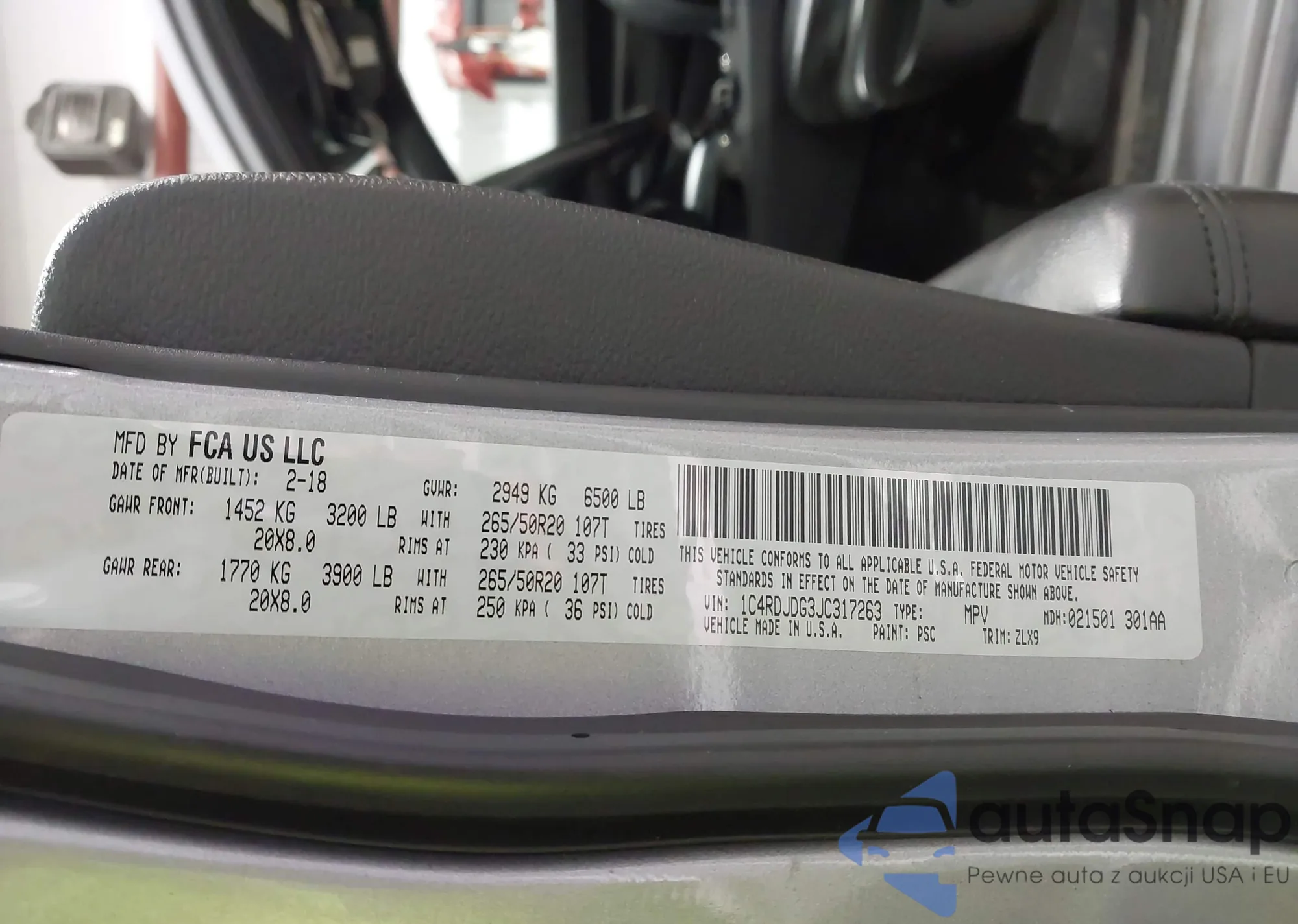VIN: 1C4RDJDG3JC317263
