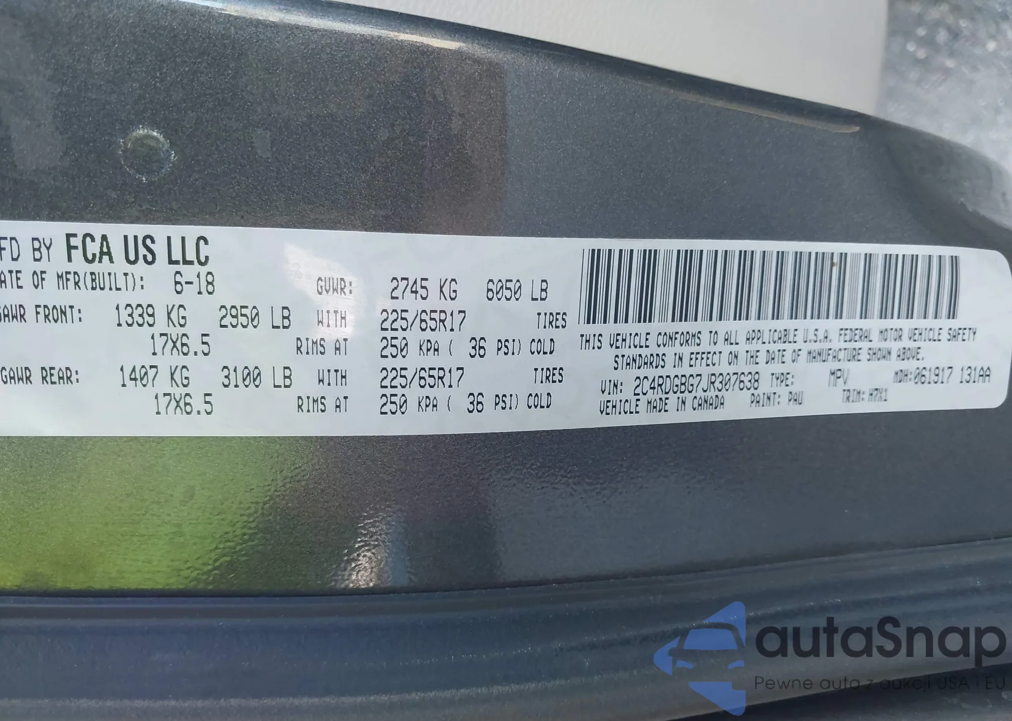 VIN: 2C4RDGBG7JR307638