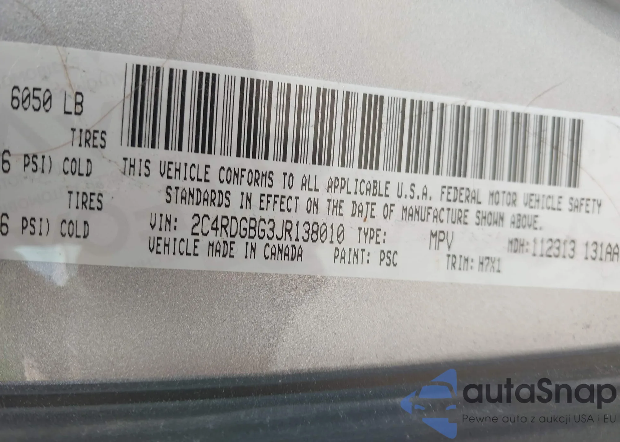 VIN: 2C4RDGBG3JR138010