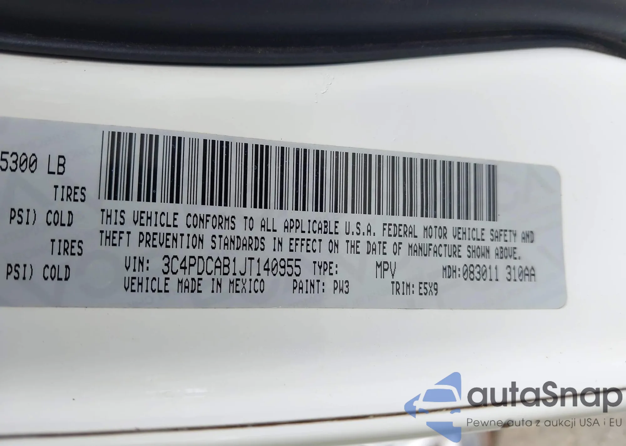 • VIN: 3C4PDCAB1JT140955