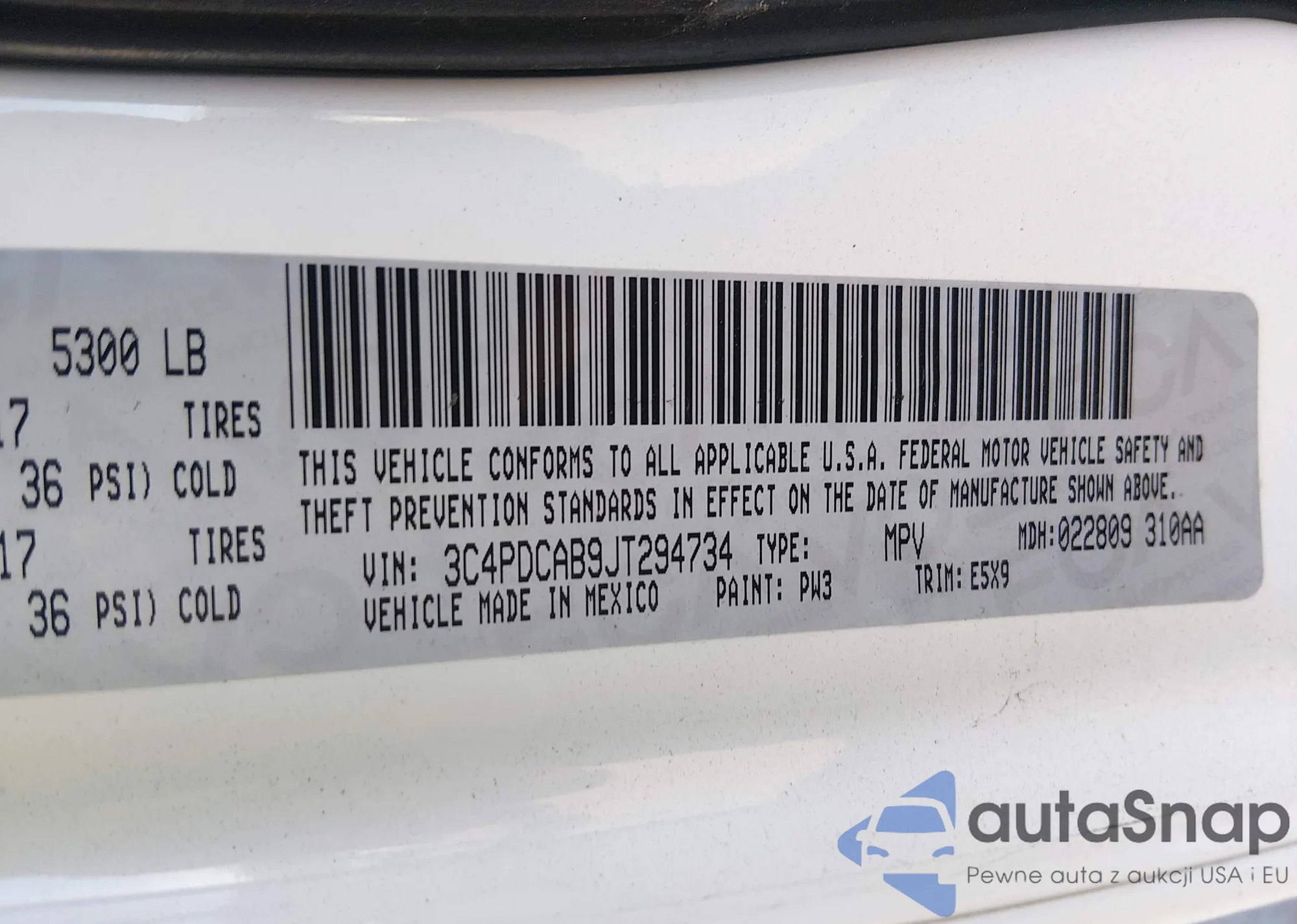 • VIN: 3C4PDCAB9JT294734