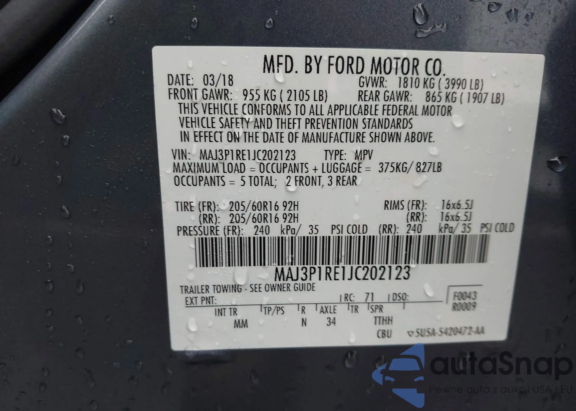 • VIN: MAJ3P1RE1JC202123