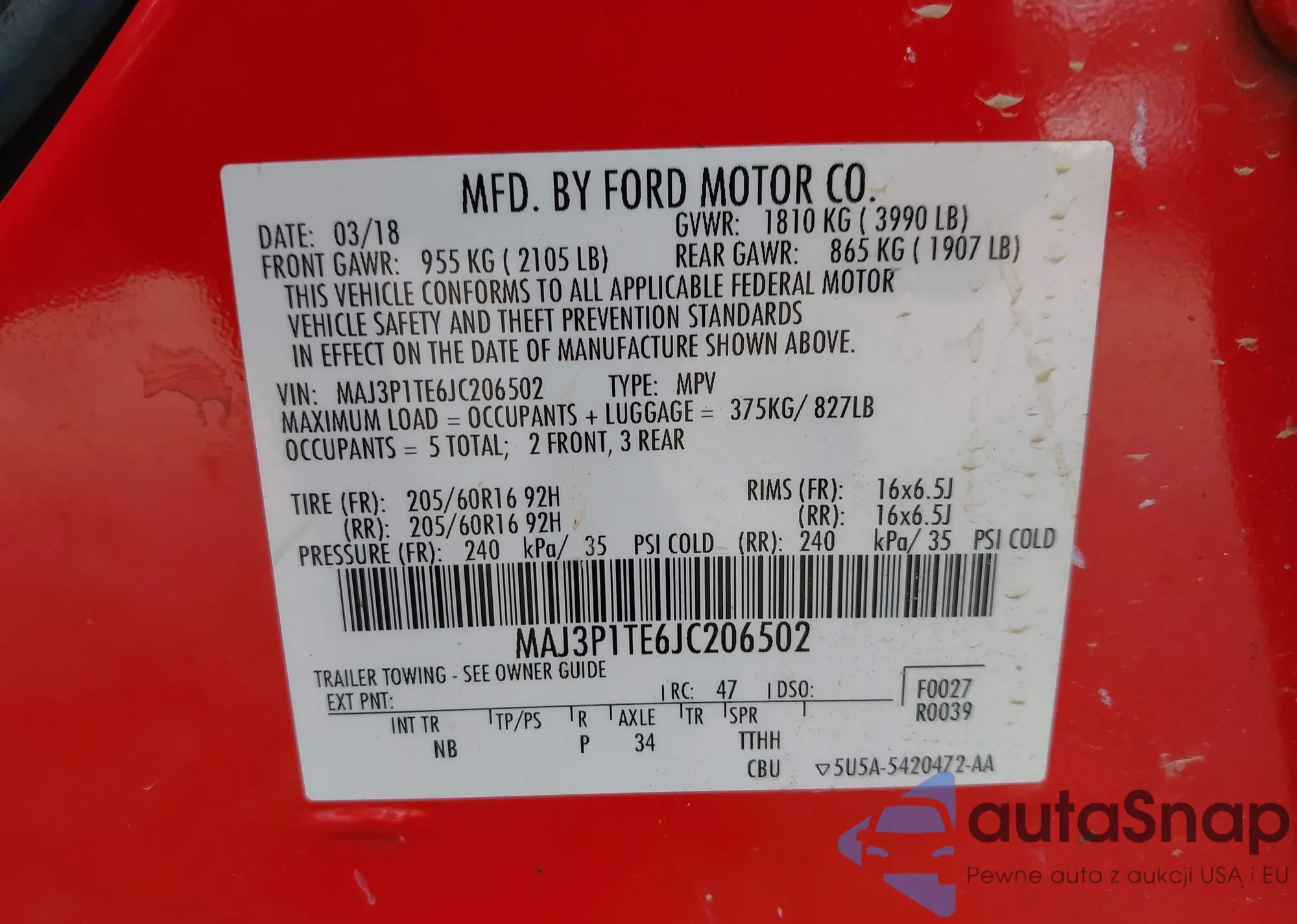 • VIN: MAJ3P1TE6JC206502