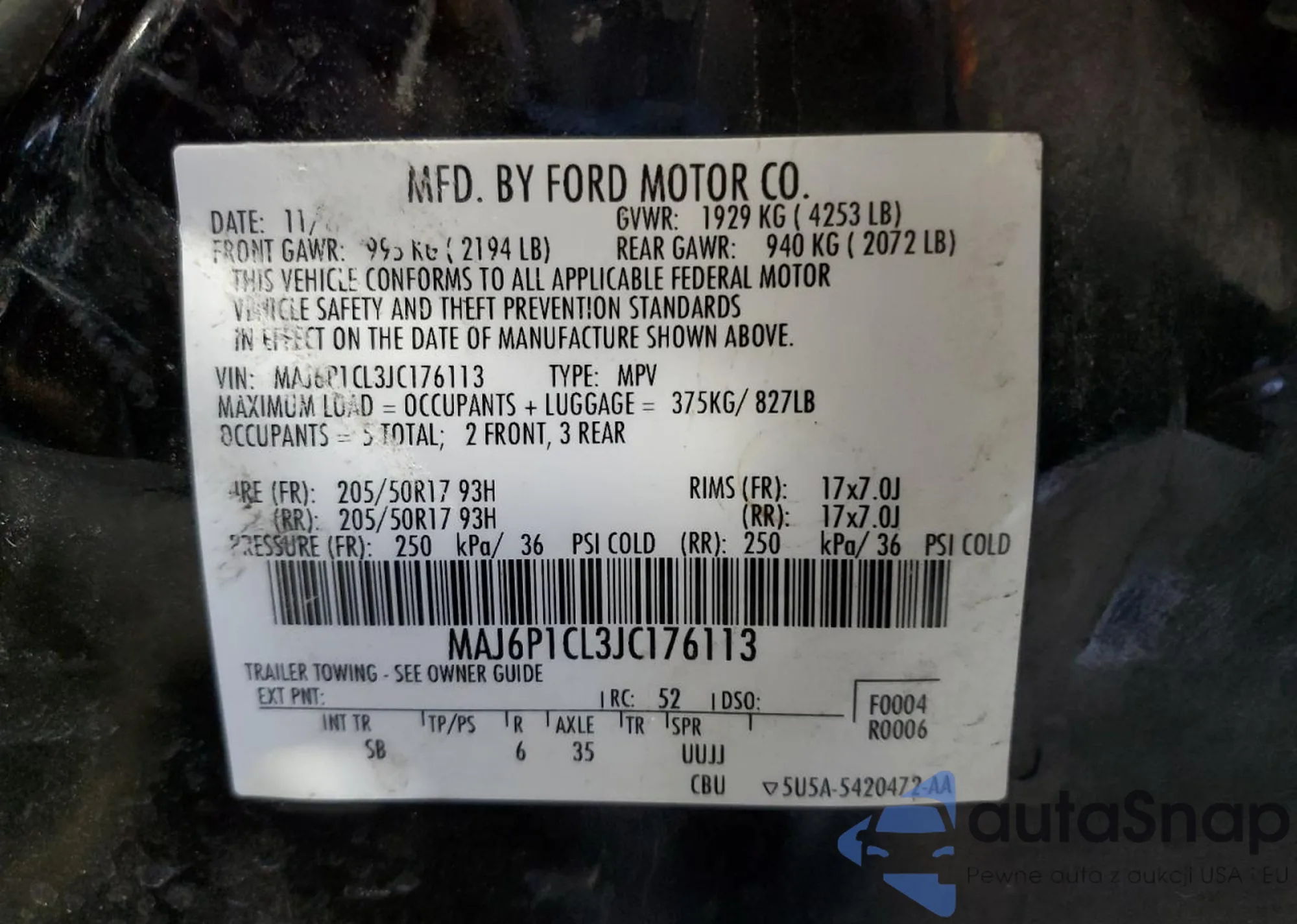 VIN: MAJ6P1CL3JC176113